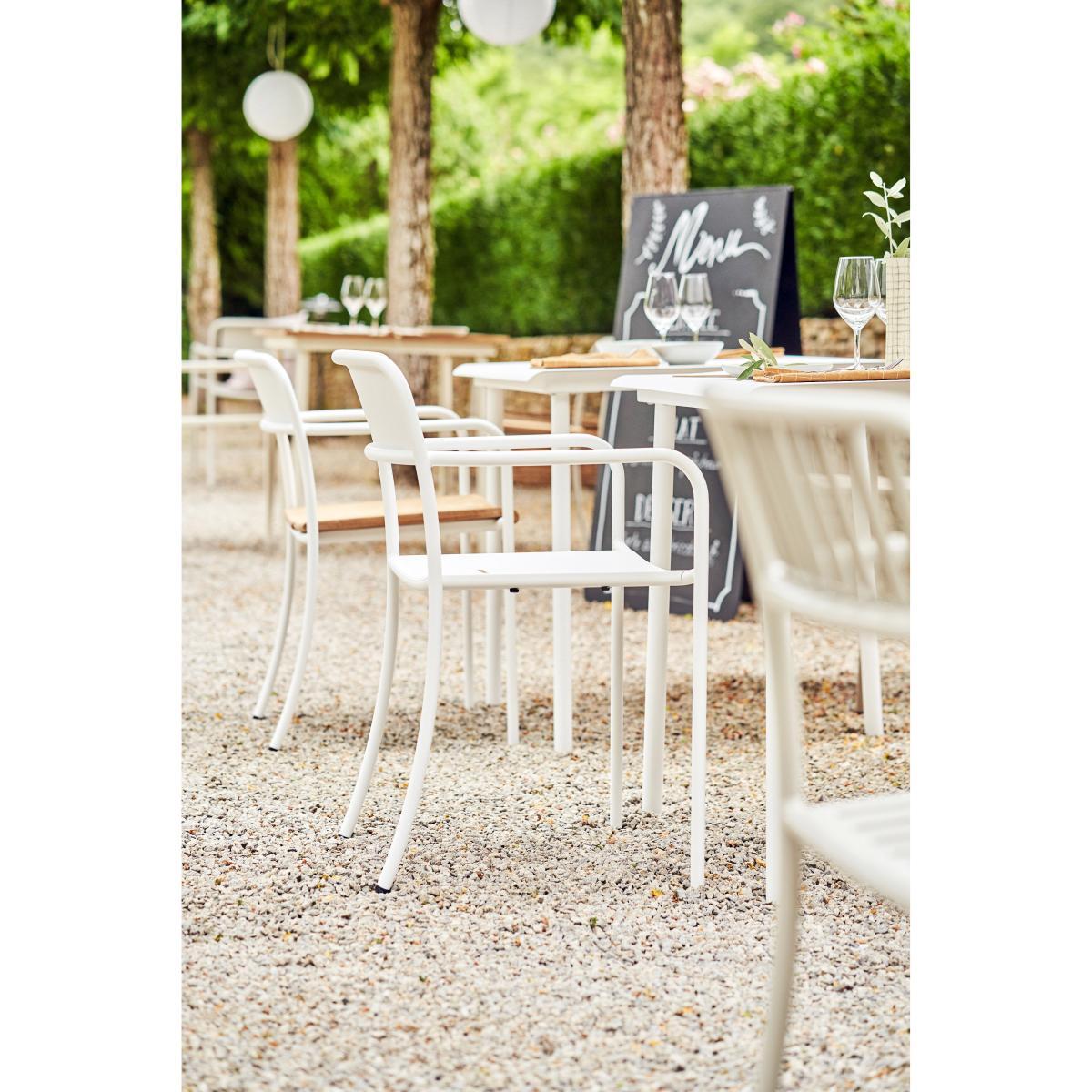 With Patio, a new icon of French industrial furniture was born… Combining her creativity with Tolix's know-how, young French designer Pauline Deltour has become the first female designer for Tolix. Her range of outdoor furniture in stainless steel reflects Tolix’s taste for straightforward, functional, conspicuous models. Patio furniture offers fluid, refined forms. In this project, every detail counts: the lines are straightforward, the forms balanced. Solid and thin, full or laminated sheet metal. With its wire-like forms, stainless steel as resistant as it is poetic and ethereal, like calligraphy. From the first prototypes, Pauline observes, tests and readjusts until she finds perfection. Alongside the Tolix technicians, she finally finds the right equation to offer designer furniture, balanced, timeless and easy to live with, produced in the Tolix factory in Autun, Burgundy. Mix the versions, dare to match acid colours or play on shades and tones. PATIO is the freedom to create your own world! Light, stackable and hard-wearing, it was designed for you. So you can fully enjoy life without worrying about the rest. Very ethereal, this Patio armchair is made of steel slats which emphasise solid and empty spaces. Its dimensions and solidity make it particularly suitable for intensive use such as in the hotel and restaurant sector. The Patio collection is perfectly suited to outdoor use thanks to its stainless-steel manufacture that’s 100% recyclable. This material offers perfect resistance to corrosion, even in difficult environments (seafront, swimming pool etc). The entire Patio collection is made in France in the only TOLIX factory in Burgundy.