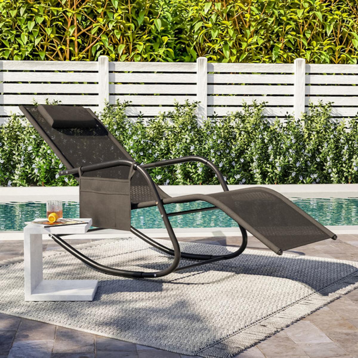 Patio Lounge Chaise Rocker with Pillow for Outdoor - Black