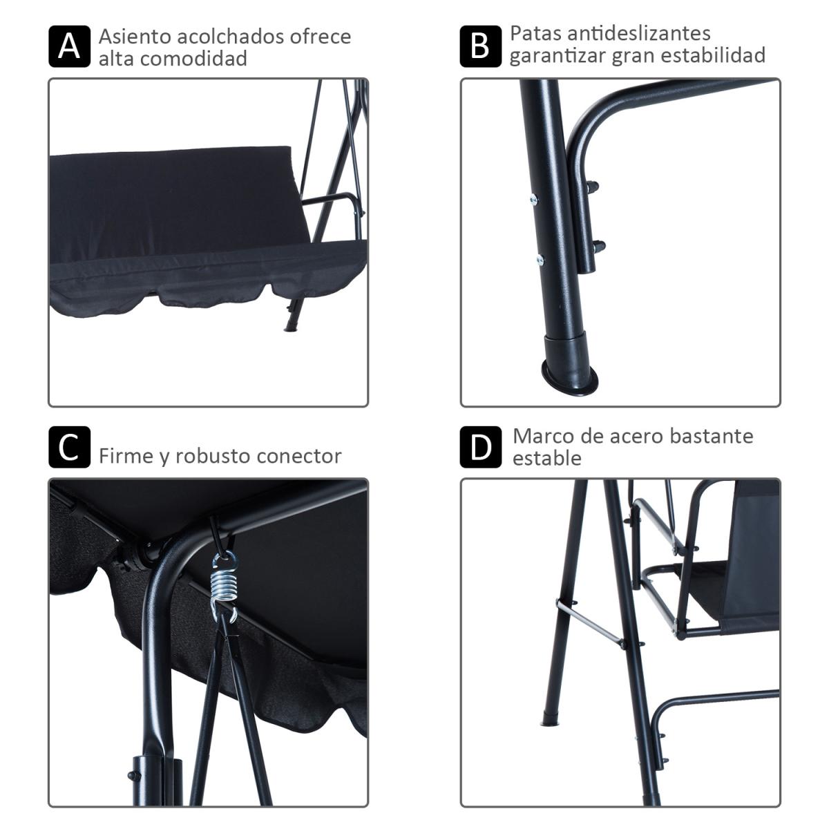 Relax in style and comfort - do it with this Outsunny garden swing chair. Seats up to three people plenty of room to relax with friends or grab extra room for yourself. The adjustable angle shields you from mild weather above at different positions. With a padded seat and high back, you'll be relaxing comfortably and with support. Sport stripes for style, this season and beyond!