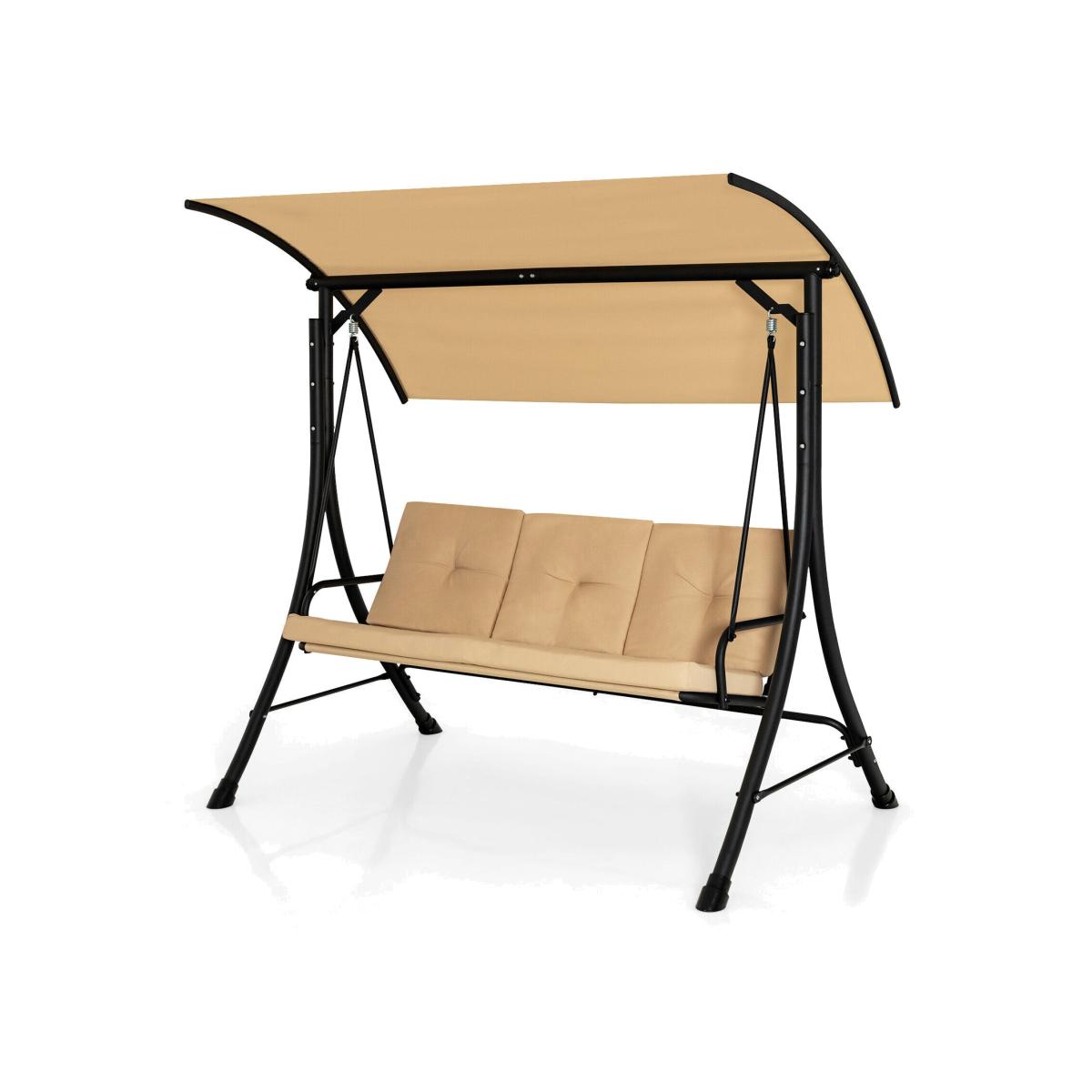 Our outdoor porch swing with a canopy can provide a comfortable sitting feeling, letting you have a good leisure time and relieve stress. The porch swing features a heavy-duty steel frame, triangular base and solid spring hooks, bearing up to 360 kg. Seat fabric made of olefin is breathable and wearable for more comfort and longer service life. And the seat and back cushions filled with high-density sponge offer extra cosiness. Patio Porch Swing - Brown