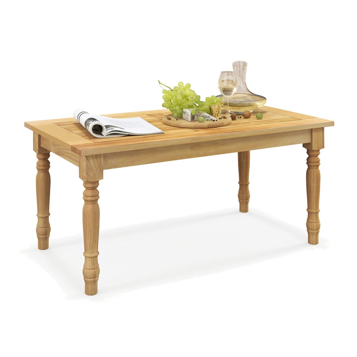 Elevate your outdoor experience with our stylish and functional coffee table! Crafted from solid teak wood, this side table exudes natural beauty and durability, which is suitable for long outdoor use. The slatted tabletop adds a touch of elegance while allows water to drain easily. This rectangular coffee table seamlessly blends with your indoor decorations as well. Whether you are enjoying a morning coffee outdoors or hosting a gathering with friends, this versatile table provides the perfect surface for drinks, snacks, or decorative items.