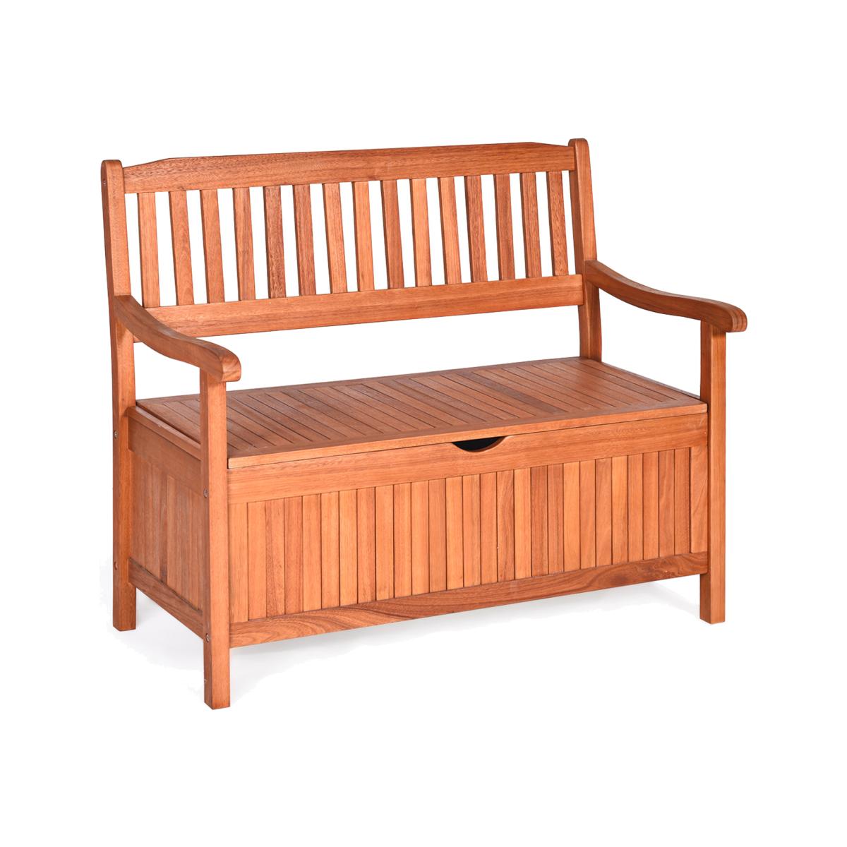 This patio storage bench will be a functional addition to your outdoor relaxing places. Made of superior eucalyptus wood, the storage bench is not easy to crack, bend or deform, ensuring long lifespan. And the bench can bear up to 360kg, which is sturdy enough for two people to sit. You can put frequently used items under the seat for easy fetch. And the premium handle allows you to effortlessly open or close the top lid. Other than that, the bench seat is comfortable to sit with curved armrests and wide sitting area.