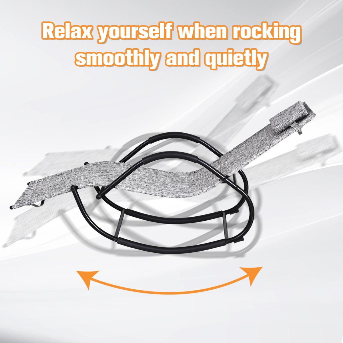 Designed with complete relaxation in mind, this rocking sun lounger is ideal for enjoying the sun in your garden, on your balcony and wherever else possible. Made from lightweight but sturdy metal which can handle up to 160kg, the frame is crafted into a unique design that will let you rock forwards and backwards smoothly and gently, with a tough and durable texteline sling covering the whole of the waved seat for maximum comfort, as well as allowing your skin to breathe in hotter temperatures. With pads on the upper of the armrests, so your skin doesn't touch the metal when It's hot, this lounger is completed with a removable pillow for head support and comfort if wanted.