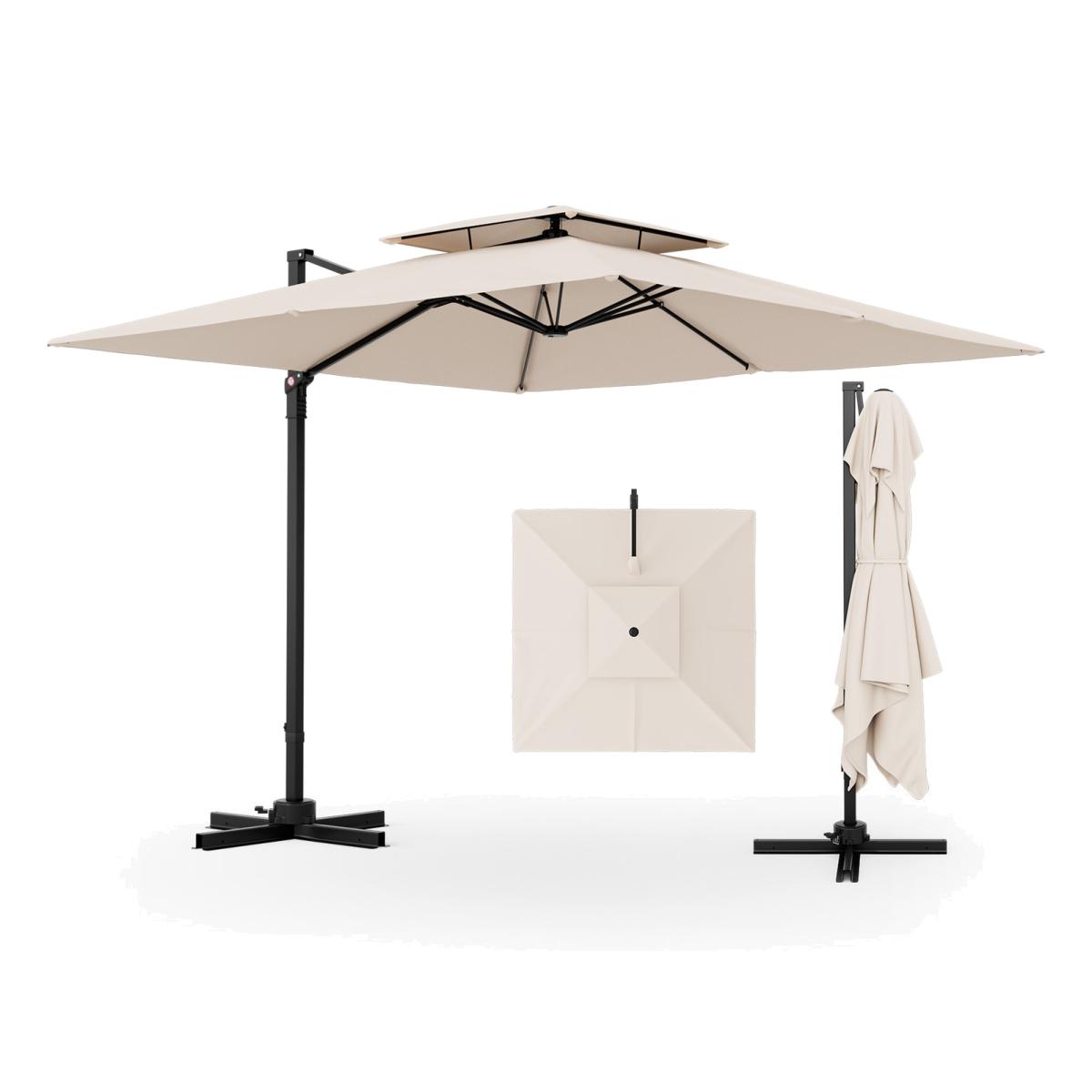 Our patio cantilever umbrella features a foot pedal with 16 gears, which is upgraded to provide 16 rotational directions for protection from the sun throughout the day. Equipped with a premium polyester fabric, it features excellent wear-resistant for lasting use. Meanwhile, it will effectively protect you from harsh sunlight and light rain. And there are 8 metal ribs to improve sturdiness. Patio Umbrella Hanging Parasol - Beige