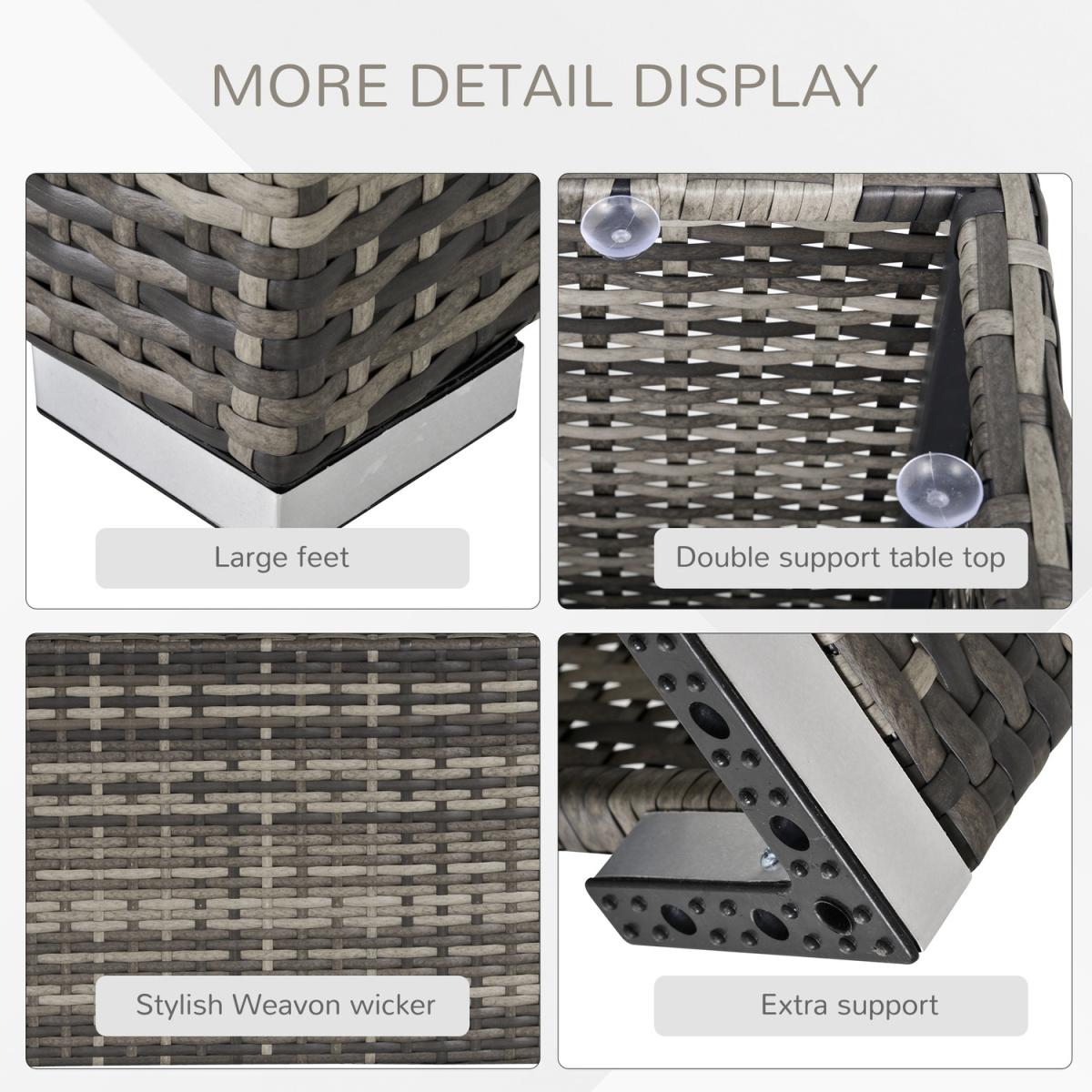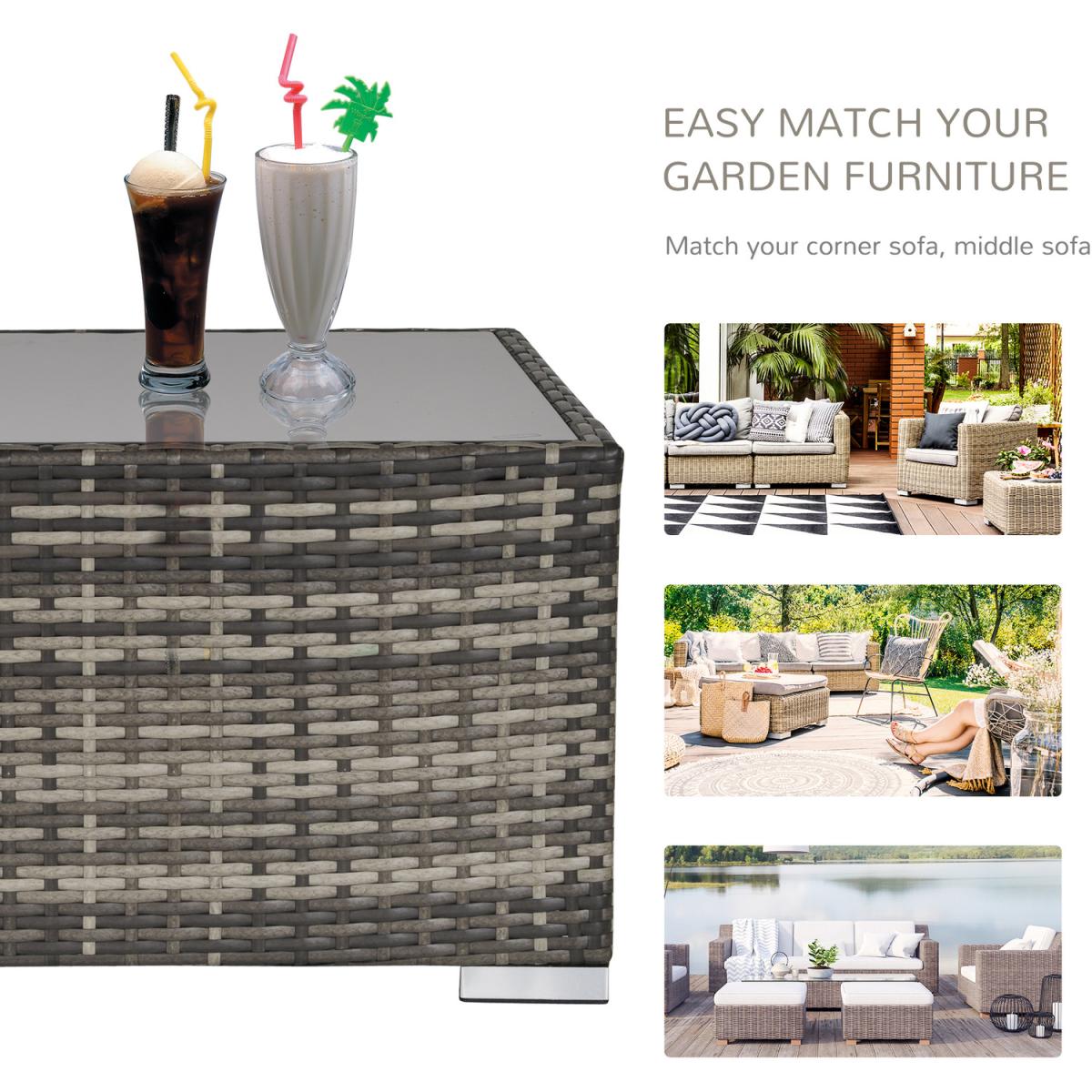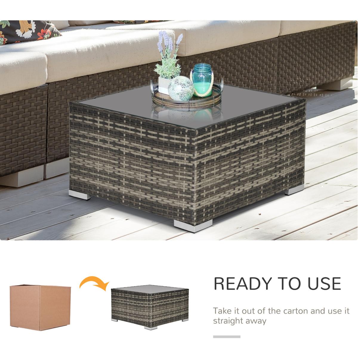 This forever on-trend square table, from Outsunny, will bring an effortlessly elegant touch to your garden and outdoors. The steel frame ensures a solid structure, wrapped PE wicker so extra durable and resistant to mild weather damage. It's fitted with a tempered glass tabletop, giving you a safe holding spot that can be wiped clean easily. It's finished with footpads for floor protection.