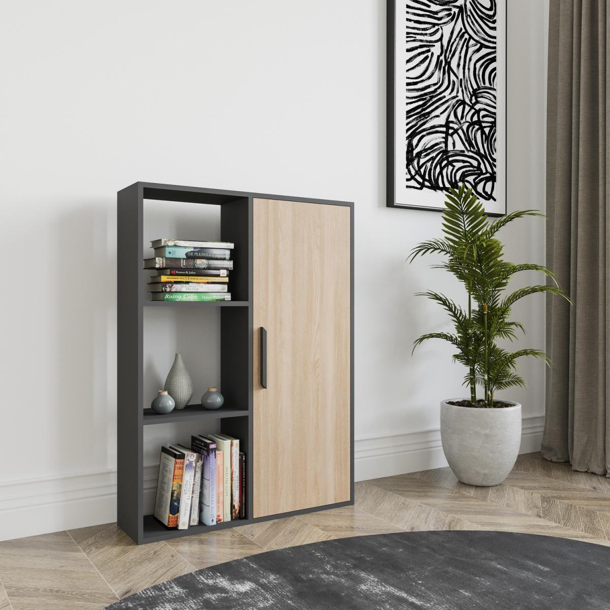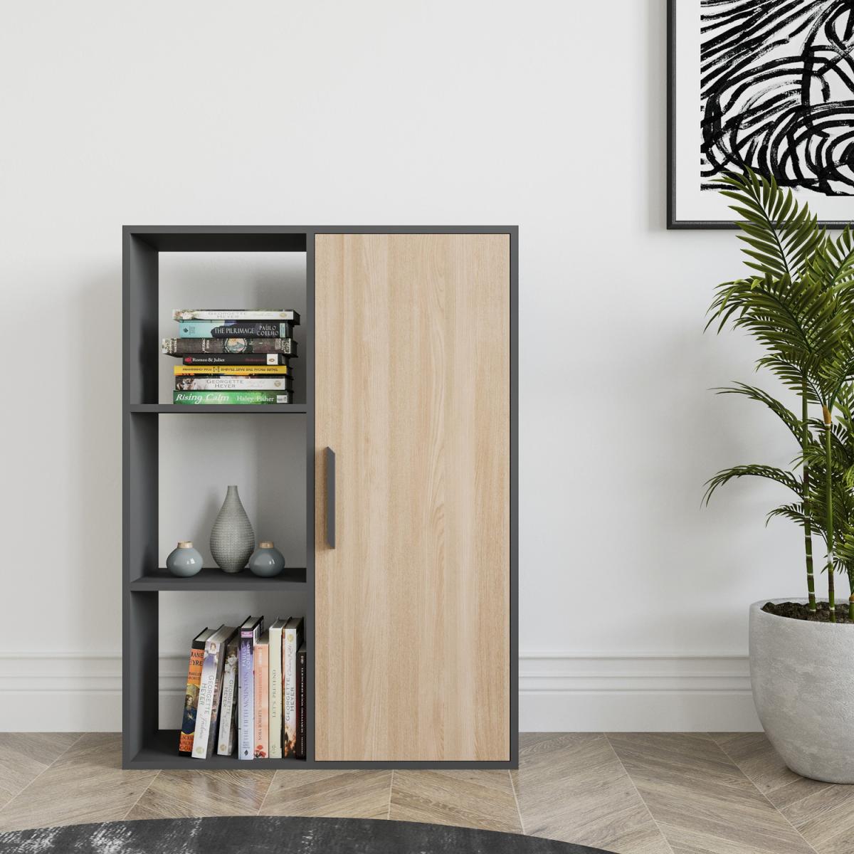 Patrick 125 cm tall modern bookcase has a chic design. The bookcase with 3 open shelves and 1 cabinet adds your home a modern look. The bookcase provides storage space for your books, CDs, and accessories, while creating space with its minimal design that you can use in every corner of your home. Bookcase is made of 18mm thick melamine veneer particle board and banded with PVC edge band. It is manufactured using eco-friendly and health-friendly materials. The product will be delivered to the customer in the original package as disassembled. It is designed to be assembled by the customer using a power drill. Assembly instruction and installation hardware are included in the package. For fast and error-free installation, product parts are numbered with stickers following the assembly guide.