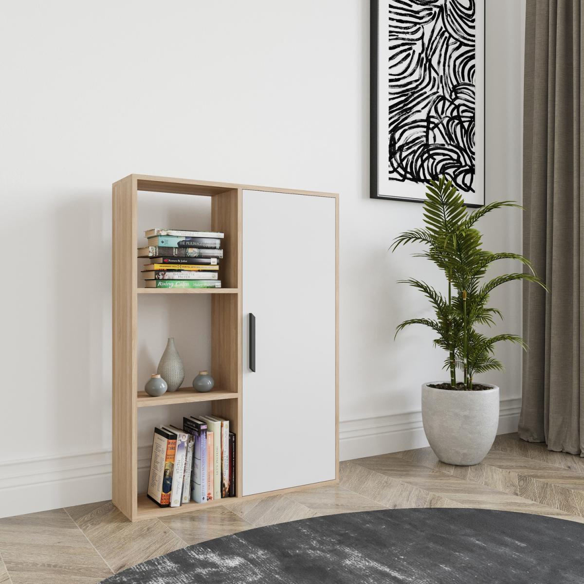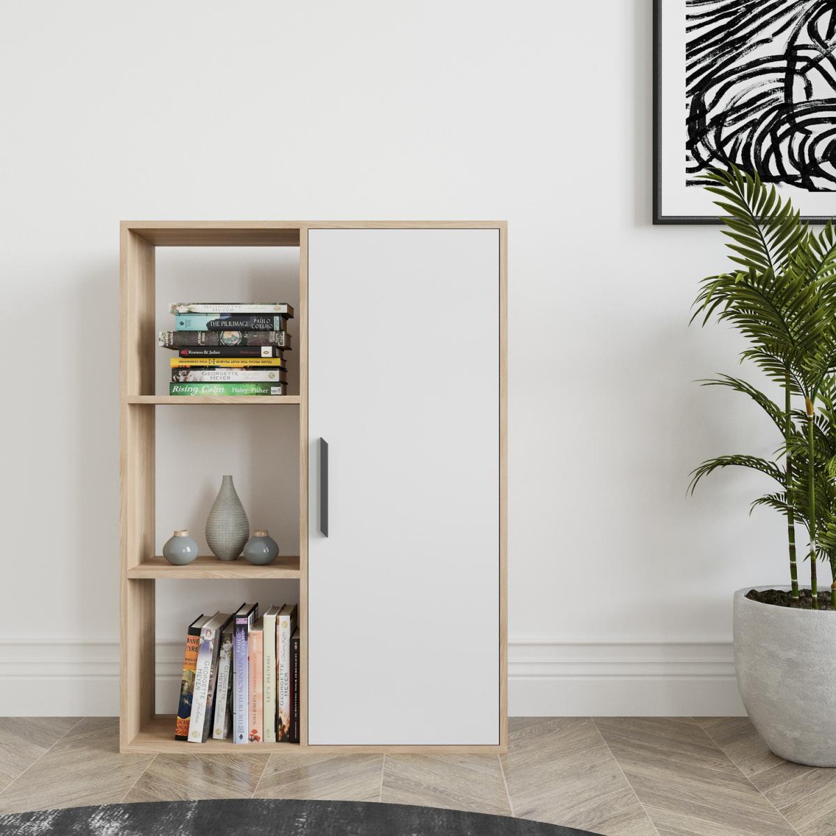 Patrick 125 cm tall modern bookcase has a chic design. The bookcase with 3 open shelves and 1 cabinet adds your home a modern look. The bookcase provides storage space for your books, CDs, and accessories, while creating space with its minimal design that you can use in every corner of your home. Bookcase is made of 18mm thick melamine veneer particle board and banded with PVC edge band. It is manufactured using eco-friendly and health-friendly materials. The product will be delivered to the customer in the original package as disassembled. It is designed to be assembled by the customer using a power drill. Assembly instruction and installation hardware are included in the package. For fast and error-free installation, product parts are numbered with stickers following the assembly guide.