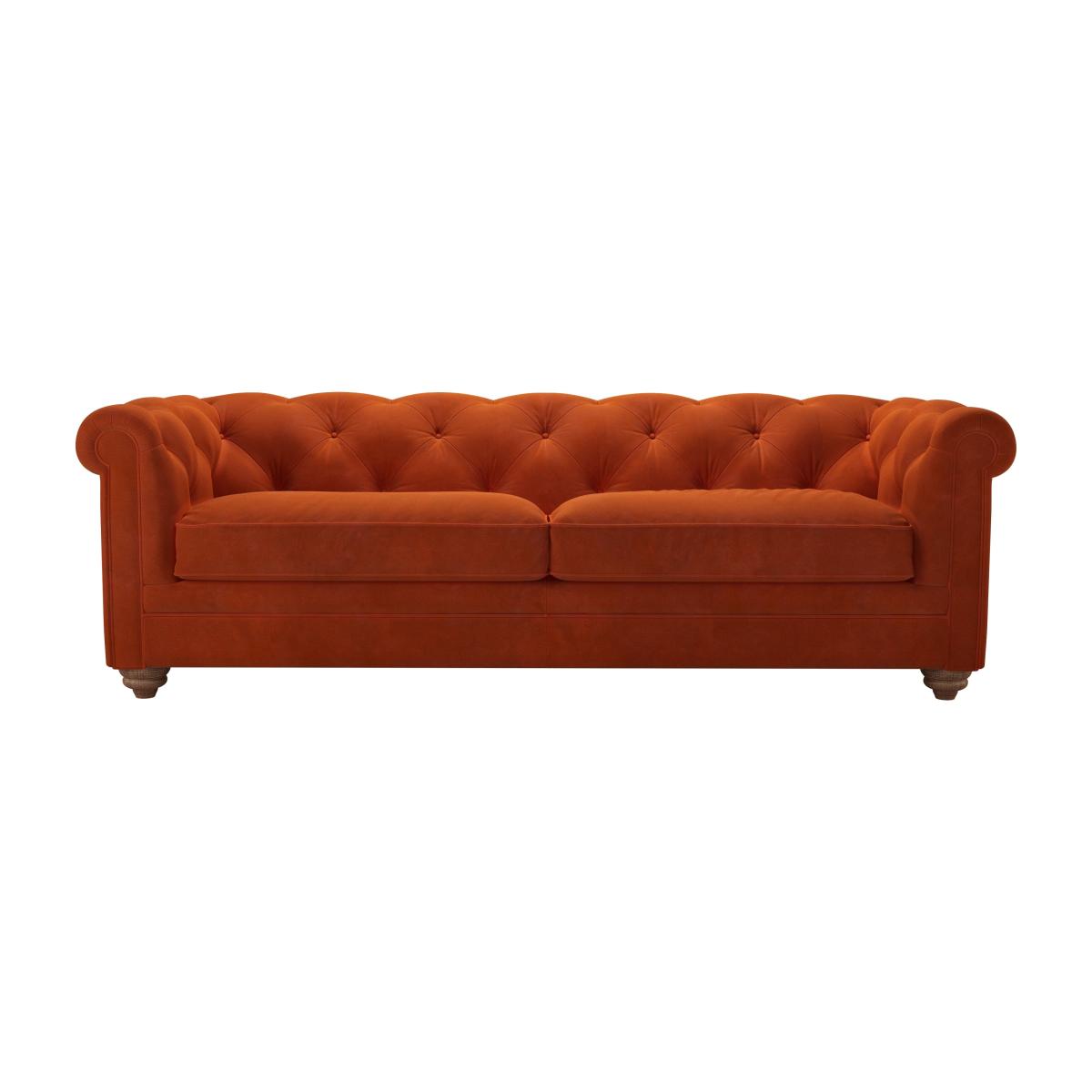 I love this three-seater because it combines timeless elegance with practical versatility. The classic Chesterfield-inspired design with deep button tufting and rolled arms adds a sophisticated touch, while the Brick Aquaclean Clever Velvet offers a vibrant pop of colour and easy maintenance. It works particularly well in eclectic, modern, or transitional interiors where a statement piece is key. For styling tips, consider pairing it with neutral or contrasting cushions to highlight its rich hue, and place it in a room with layered textures like wooden or metallic accents to keep the look fresh. Its built-in sofa bed feature makes it ideal for multifunctional spaces, blending everyday comfort with unexpected practicality.