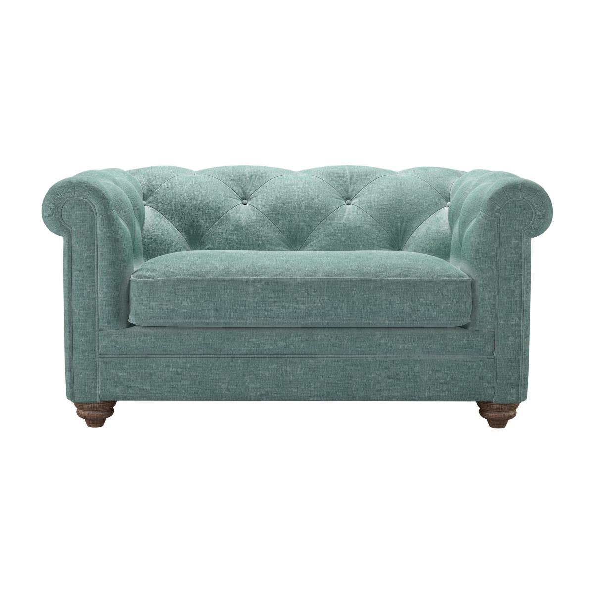 I love this two-seater for its classic yet fresh look, thanks to the Sea Spray hue, which adds a subtle splash of colour without overwhelming a space. It’s versatile enough to complement a variety of interiors-from traditional Chesterfield-style rooms to more modern, minimalist schemes. The Aquaclean fabric is a smart choice for busy households, offering practical stain resistance without sacrificing comfort. For styling, pair it with neutral tones like soft greys or warm beiges to keep the focus on the colour, and add textured cushions or throws for a cosy touch. It works particularly well in relaxed living areas, but also holds its own in more refined settings when styled with contrasting accessories.