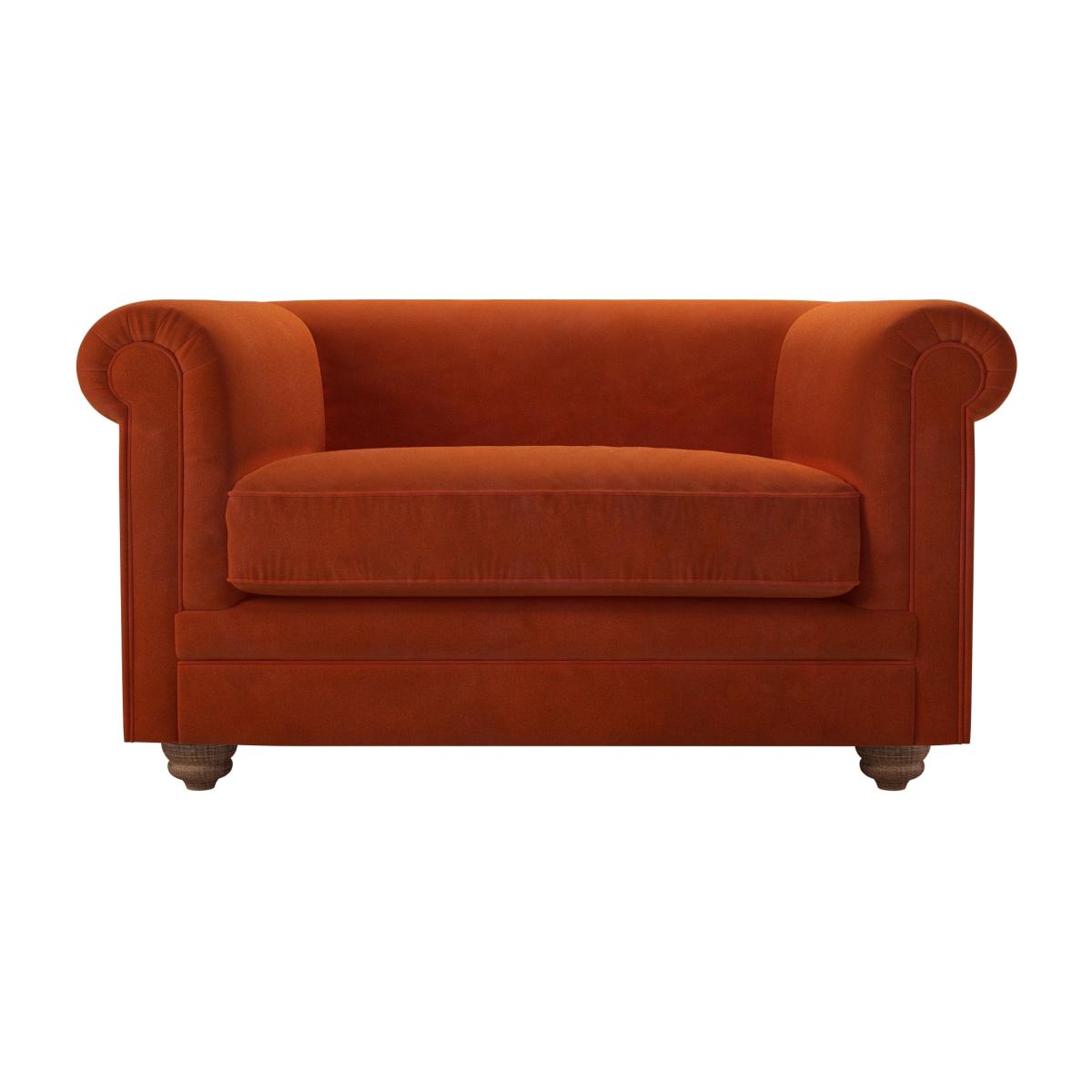 Patrick Unbuttoned Loveseat in Brick Aquaclean Clever Velvet