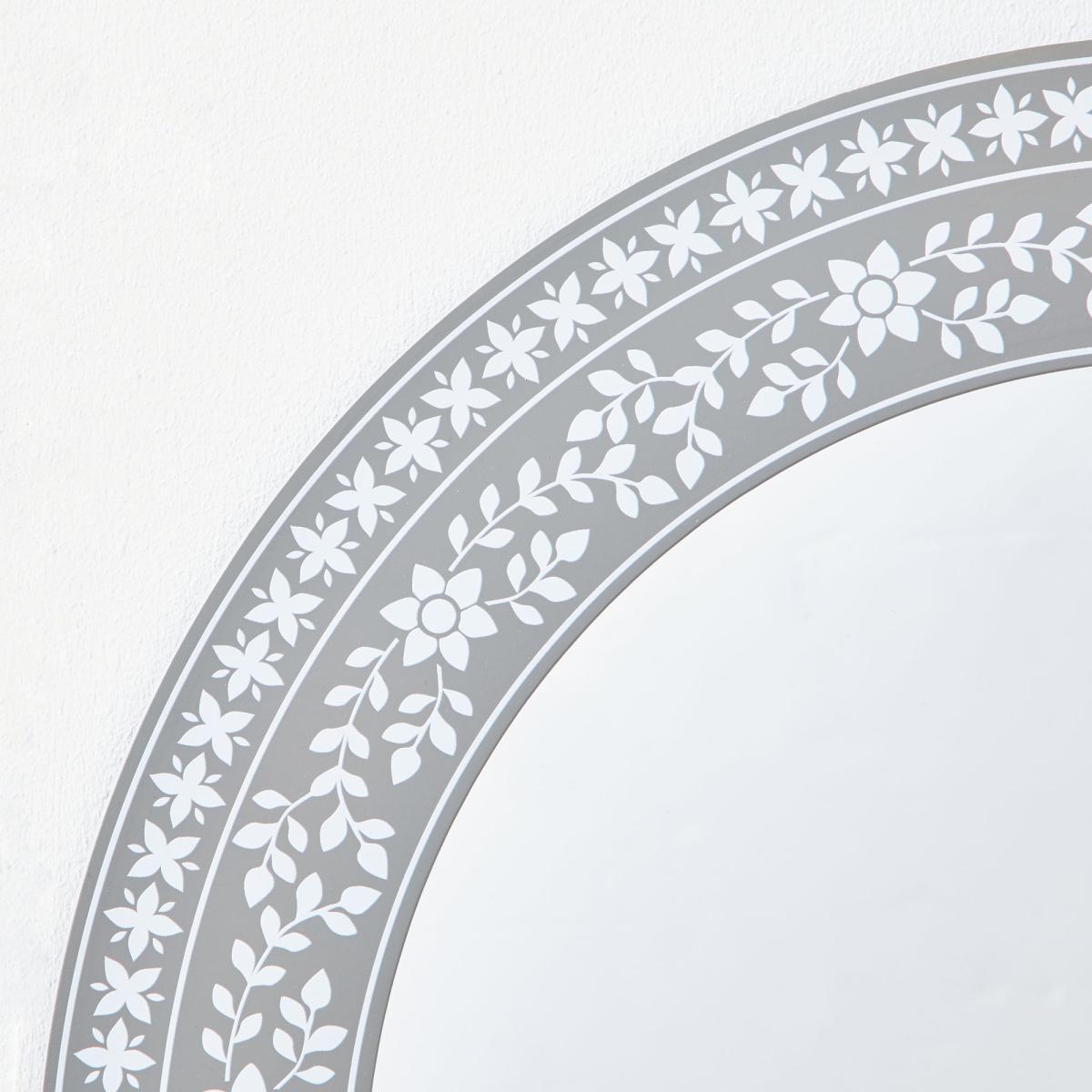 Patterned Round Wall Mirror 50cm Grey Grey and Blue