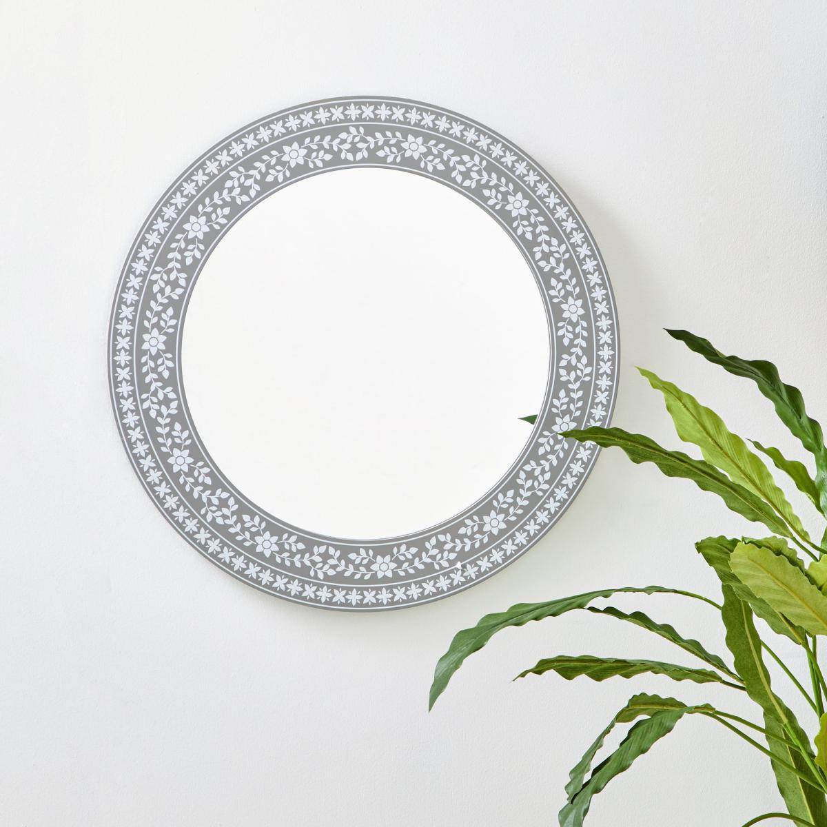 Featuring circular shape with a stunning floral pattern on a grey background, beautifully wooden finished for a contemporary appearance. A perfect piece to add a graceful ornamental touch to your décor. Hang your mirror using our helpful top tips, click. Here. To view.