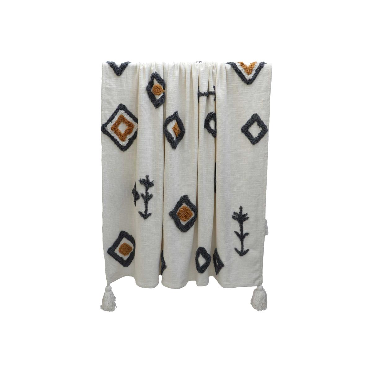 Featuring fluffy textured motifs in trending grey and ochre tones, the Patterned Throw will be a cosy addition to your favourite chair or the foot of your bed. Thecottonthrow is finished with soft tassels for a charming touch, while its cream fabric is light and understated “ perfect for any season!