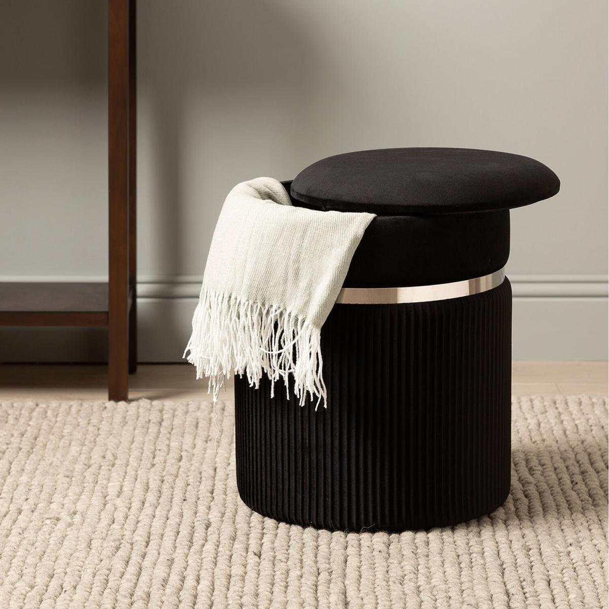 The patterned velvet stool with chrome detailing is a versatile piece that adds a touch of sophistication to various interiors. I love how its plush velvet top offers both comfort and style, making it ideal as a bedside or accent piece. It works particularly well in contemporary or modern spaces, where its sleek chrome trim can complement other metal accents. For styling, consider pairing it with textured textiles or contrasting colour schemes to make it stand out. It's also practical as a handy extra seat or footrest, and I recommend using it to inject a bit of luxe into your bedroom or lounge area without overpowering the overall decor.