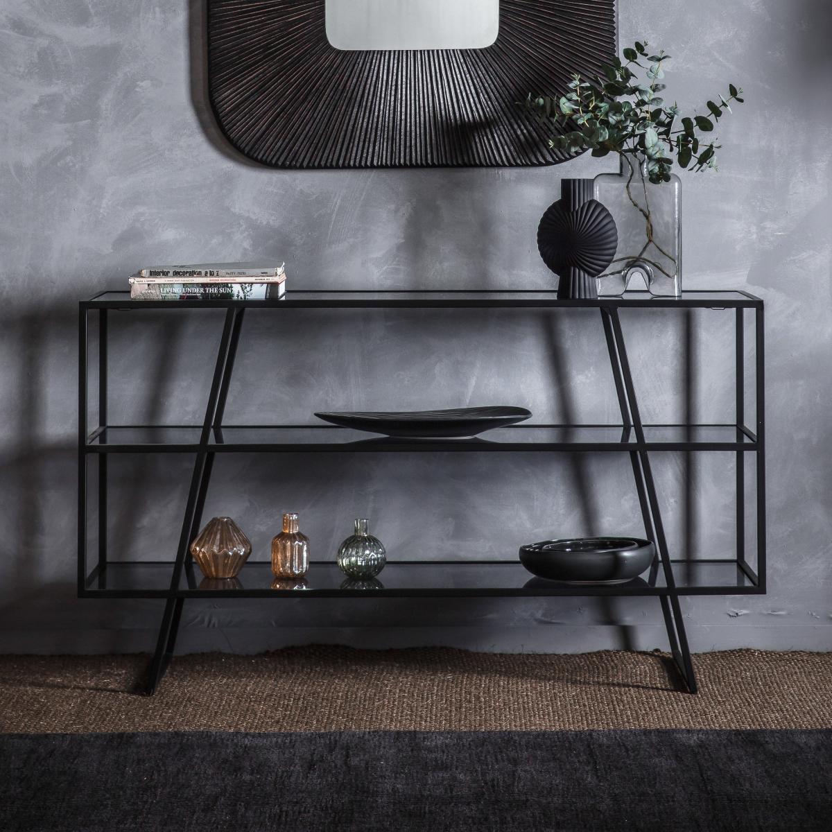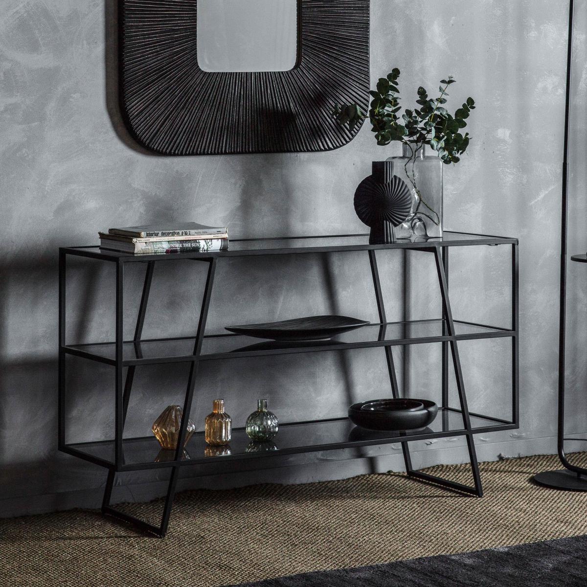 I love this black console table for its sleek, minimalist appeal that works well in both contemporary and industrial interiors. Its slim profile makes it ideal for narrow hallways or entryways, while the black finish adds a sophisticated edge. Practical styling tips include layering with a statement lamp and a few curated decorative objects, like ceramics or vases, to keep it functional without cluttering. It also pairs beautifully with artwork or mirrors above, creating a focal point in a living space. Its versatility means you can easily switch up accessories for seasonal updates or different interior themes.