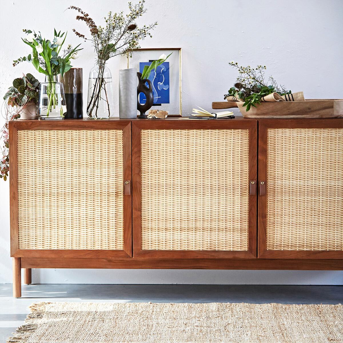 Natural materials and a functional design. The Patxi sideboard dresses its doors in woven rattan, for a stylish note. This centrepiece fits into any interior and offers a large storage capacity. A great place to store your dishes.