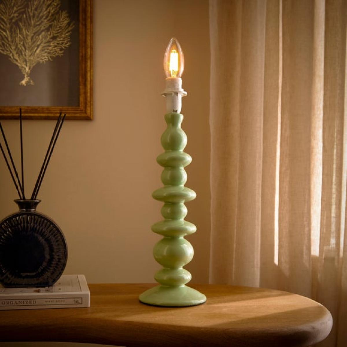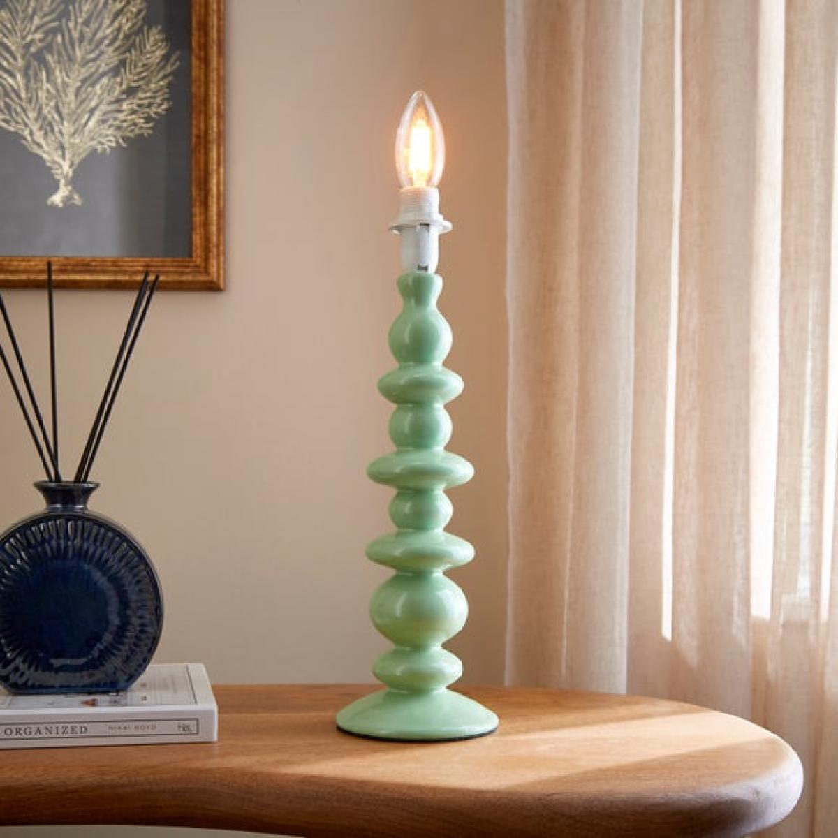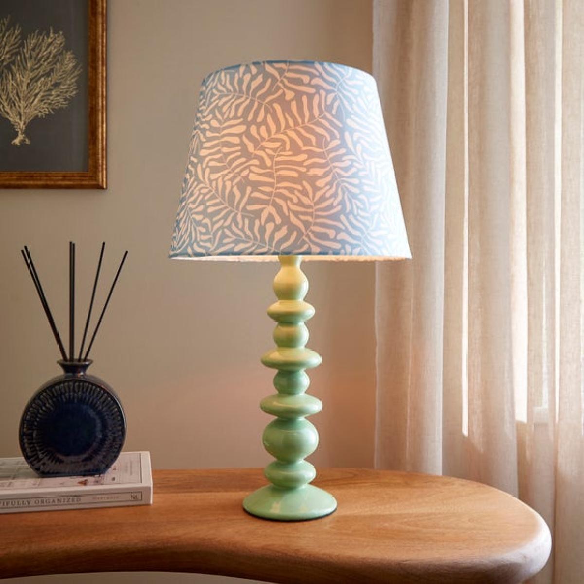 I love this lamp base for its playful yet sophisticated shape, making it a versatile piece that can add character to various interiors. It works particularly well in contemporary or eclectic schemes, where its quirky form can act as a focal point. To style it effectively, pair it with a neutral or subtly patterned lampshade in a fabric that complements your colour palette-think soft pastels or muted tones for a calm vibe, or bold colours for a statement. It’s perfect as a bedside or console lamp, adding visual interest while providing practical lighting. Just ensure the lamp base is positioned on a sturdy surface, with enough space for a matching or contrasting shade that balances the look.