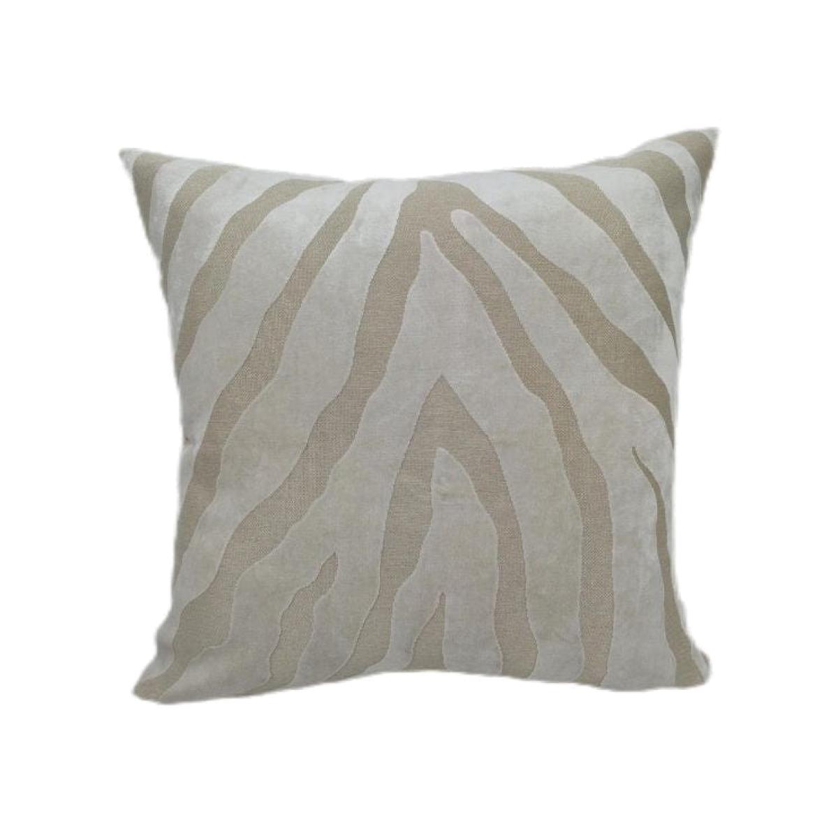 Add a touch of exotic elegance to your space with this chic ivory cushion, featuring a subtle zebra-striped motif that brings texture and sophistication to any sofa, armchair, or bed. The Paul Moneypenny “Zebedeedodah Ivory” cushion is crafted from premium zebra-cut velvet, made from a blend of 60% polyester and 40% viscose for sumptuous depth and durability. Filled with a plush feather pad, it offers luxurious comfort and lasting support. Make a refined statement with this beautifully neutral cushion. Its delicate taupe zebra stripes on ivory evoke a nature-inspired aesthetic that complements modern, rustic, or minimalist interiors. Care Instructions: Dry clean only Specifications: Material: 60% Polyester / 40% Viscose (zebra-cut velvet) Filling: Feather pad included Dimensions: 43 × 43 cm Colour & Pattern: Ivory with delicate taupe zebra stripes