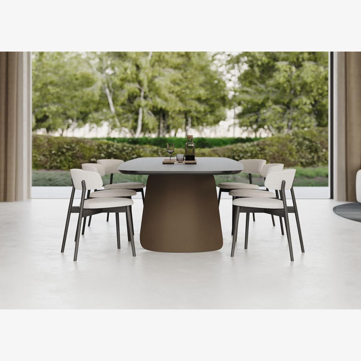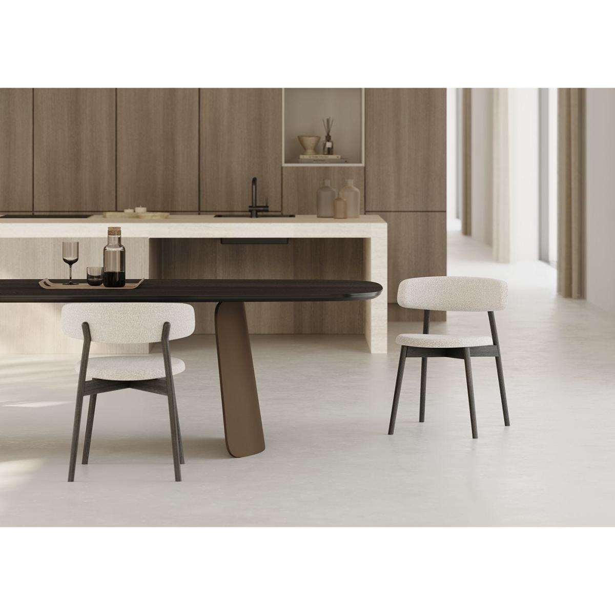 Conceived with the vision of blending the elegance of tapered legs with the soft, round lines that stand the test of time. This versatile collection offers a range of options to suit diverse preferences. Choose from wooden or metal legs, allowing you to tailor the chair to your desired aesthetic. The upholstered seat and backrest provide an added layer of comfort and refinement, elevating the dining or living space with a harmonious balance of form and function.