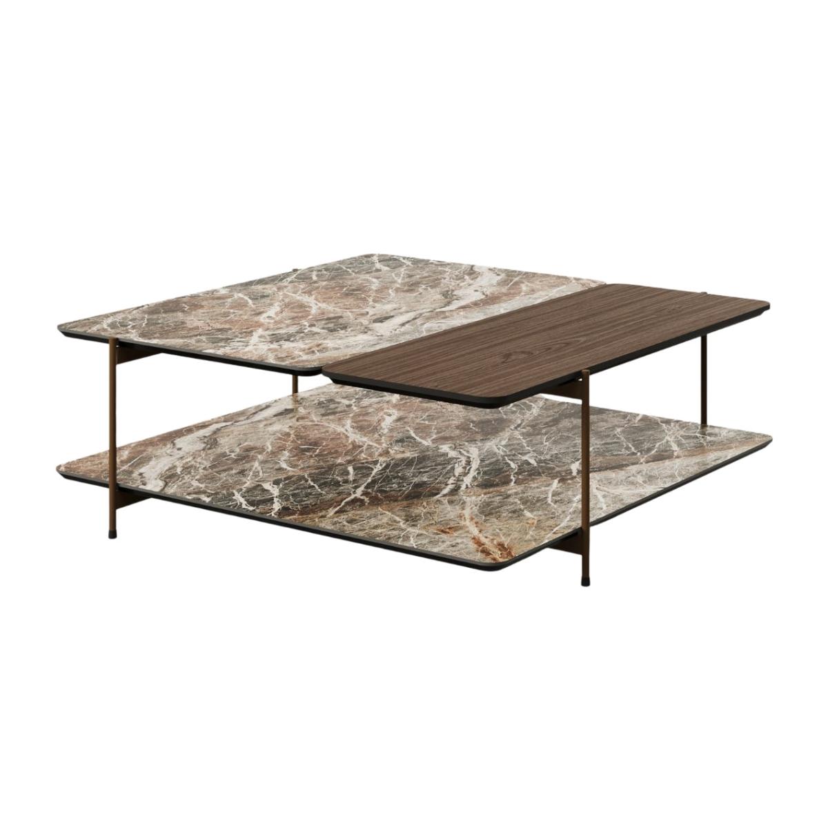 Paul Rogers Dua Stone/Wood Coffee Table Square Double Bronze Mountain Mat Walnut 100cm