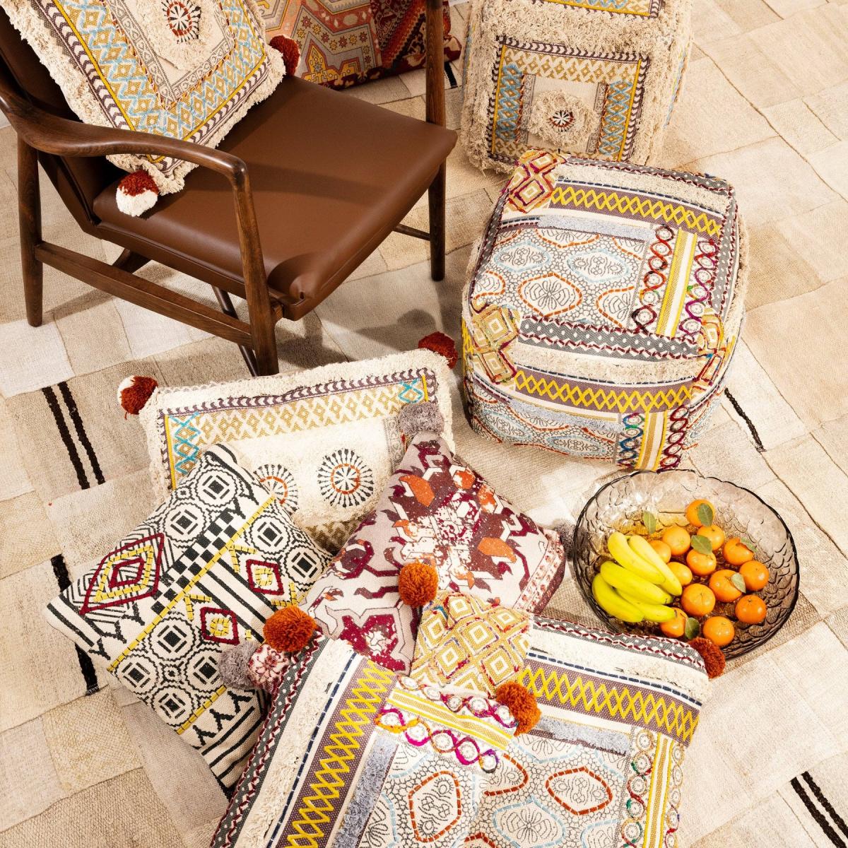 Celebrate maximalist style with our Paula hand-printed square cushion that will add a bold statement to any sofa, bed or chair with its electric print. Handmade pattern design crafted by artisans, use in neutral decors to complement solid block colour cushions and furniture items for an elevated look to the space or will look just as well in maximalist decors to inject new texture and dimension to the living space.