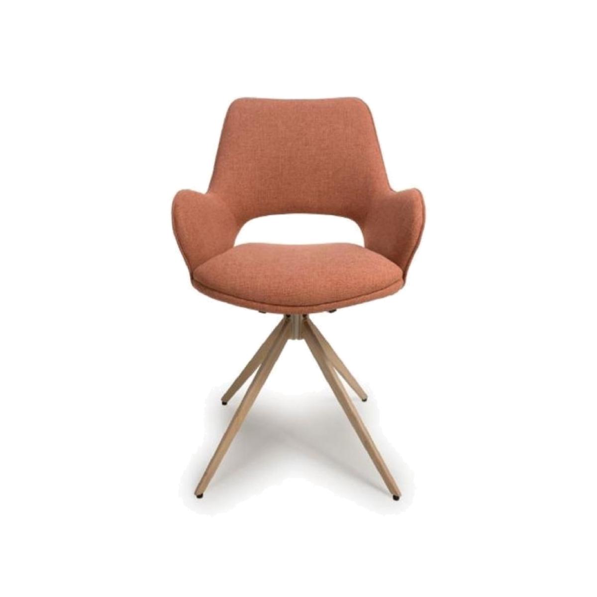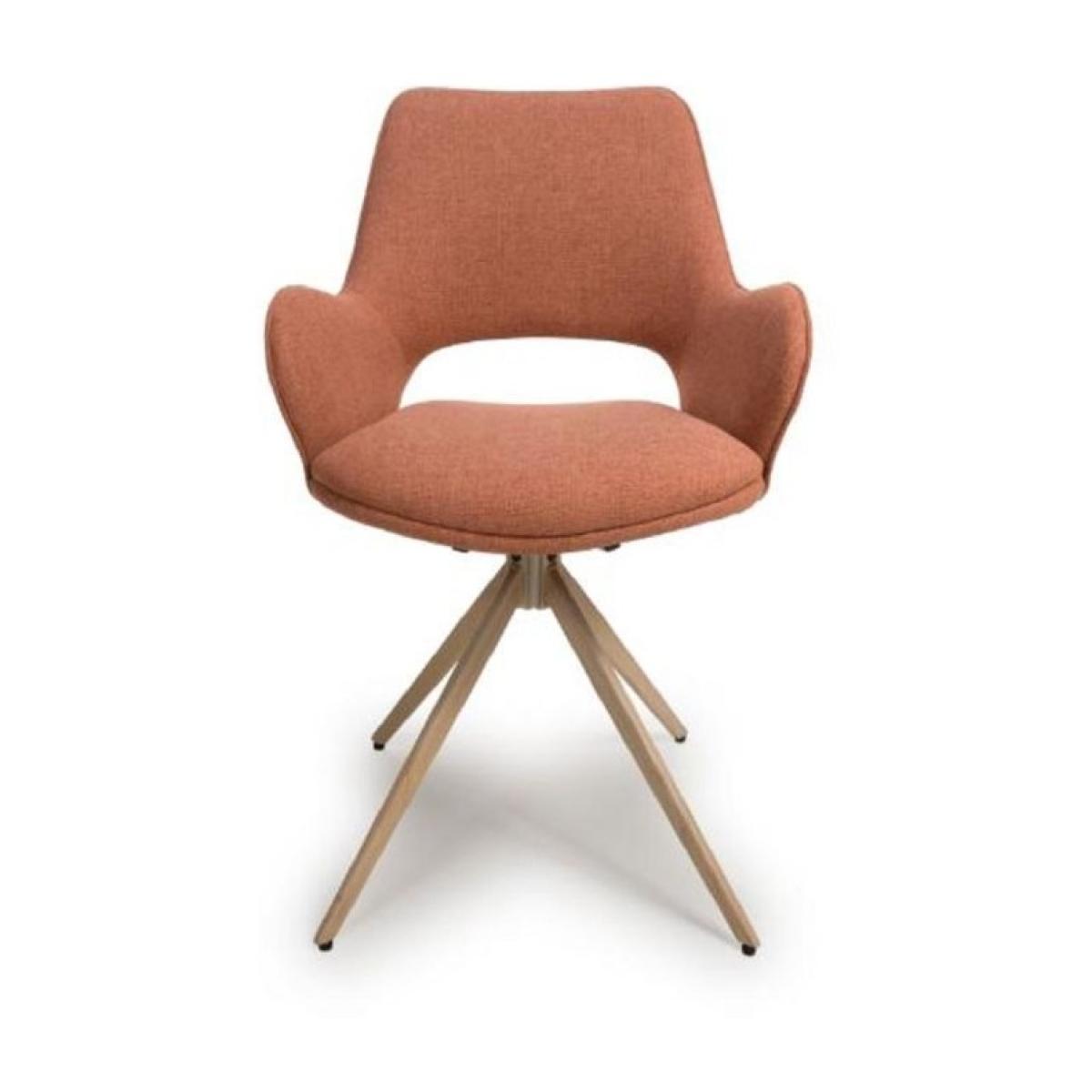 The Paulie Fabric Swivel Dining Chair in Brick beautifully merges contemporary elegance with practical design, making it an ideal choice for any dining area. Its sleek silhouette and rich brick color add a warm touch to your décor, while the 360-degree swivel feature provides ease of movement for effortless conversation and dining. With a padded seat and supportive backrest, this chair ensures comfort during long meals. The combination of style and functionality makes the Paulie Chair a perfect addition to both modern and traditional settings, enhancing your dining experience with a touch of sophistication. Features: Natural Finish Colour - Brick Easy Clean Fabric Wood Effect Covered Metal Legs Some Assembly Required 1 Year Warranty Dimensions: Height 83cm Width 56.5cm Depth 59.5cm Seat Height 49cm All screens vary in colour reproduction and whilst every effort has been made to display the colour as accurately as possible it is for guidance only.