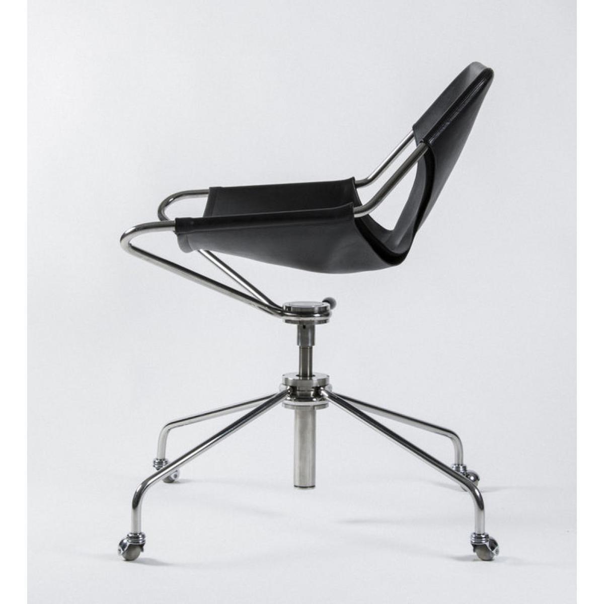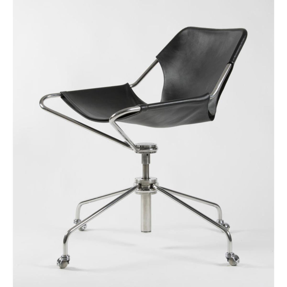 Designed in 1985 within the collective Nucleon 8, the Paulistano Office Chair is variation of the famous office chair signed by the famous architect Paulo Mendes da Rocha in 1957, a classic of Brazilian design. The constructivist concept of the structure, composed of a single bended steel bar , and its leather seat, give this chair aesthetic lightness and incomparable comfort. Paulistano impresses with its design and modernism as well as the beauty of its lines, which gives him ease, elegance and well-being. In partnership with Paulo Mendes Da Rocha, Objekto decided to re-edit the this office chair, so it is no longer just an object coveted by collectors , but also a room accessible to all. Also available in a chair version with carbon structure phosphate (as mentioned against ) or polished stainless steel. The beautiful leather seat is available in cognac, maccassar, black, chocolate , whiskey, orange and white.