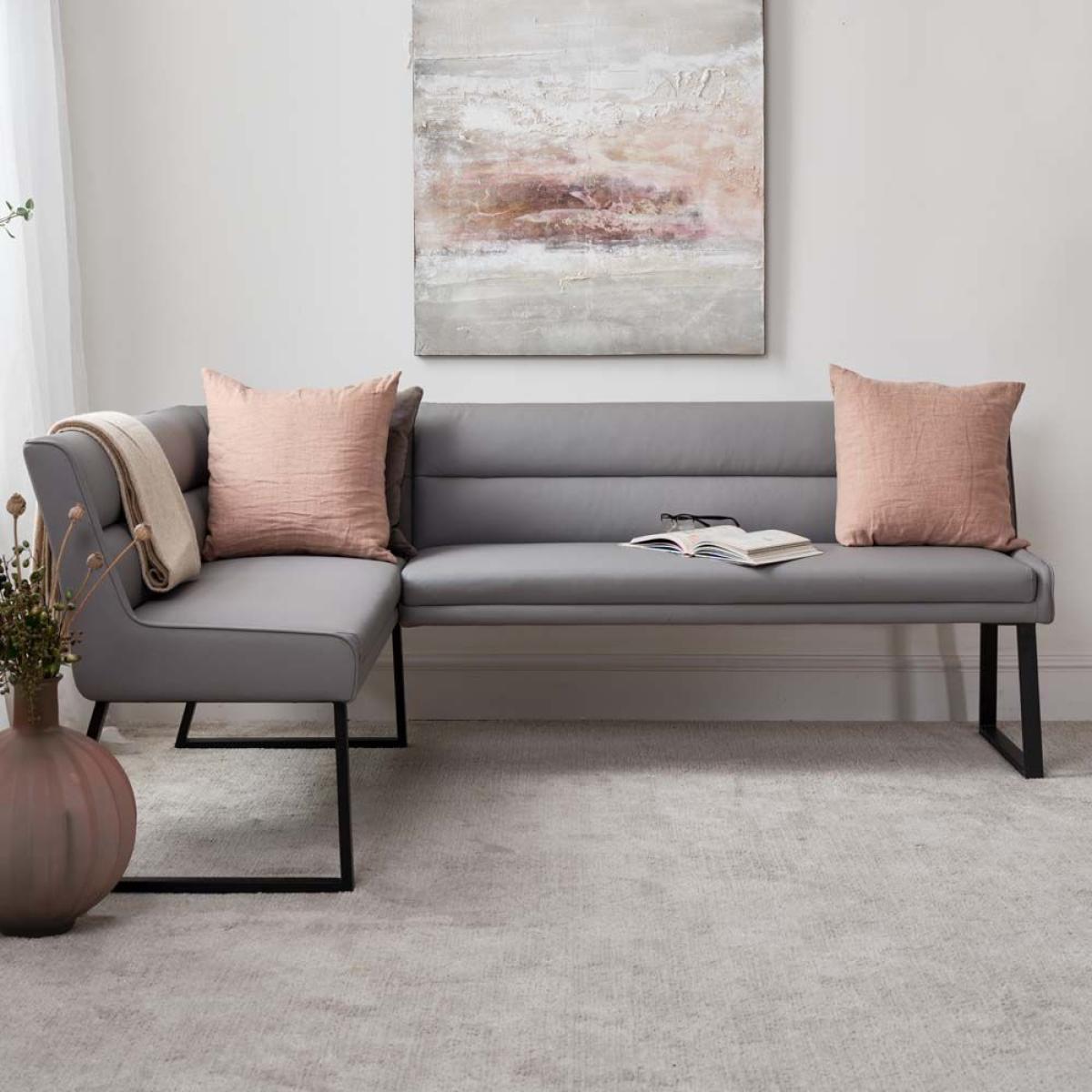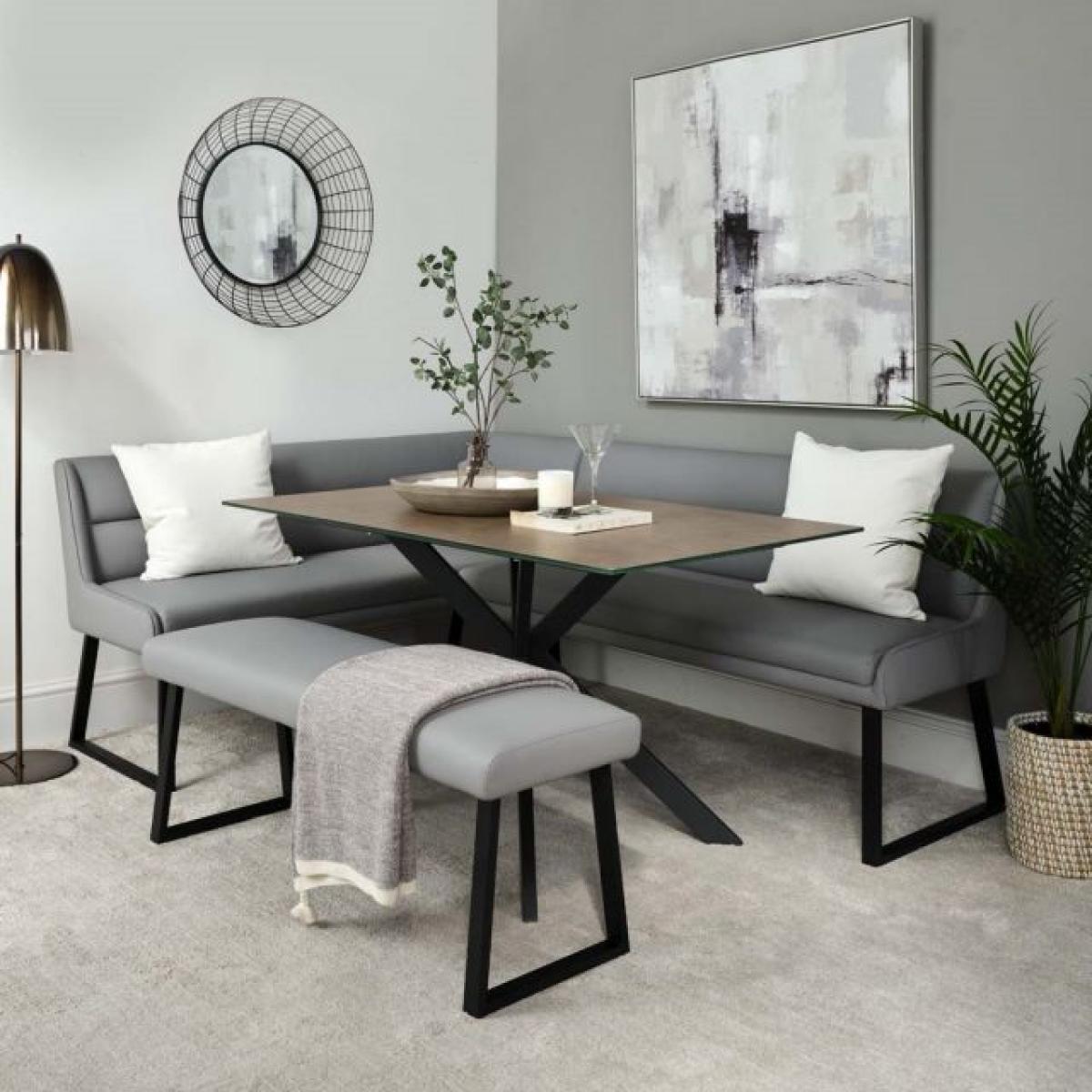 Included in this amazing bundle offer is the Paulo 135cm Dining Table, Paulo Right Hand Facing Bench plus the Paulo Low Bench. The perfect set for any modern kitchen/diner, the large and sleek coated glass table has a concrete effect finish on its surface and supported on star formation industrial black metal legs. The table is combined flawlessly with the Paulo corner bench and low bench, great for socialising and communal dining. The benches both have soft grey faux leather upholstery and thick black metal supports, ready to accommodate you and your guests at mealtimes.