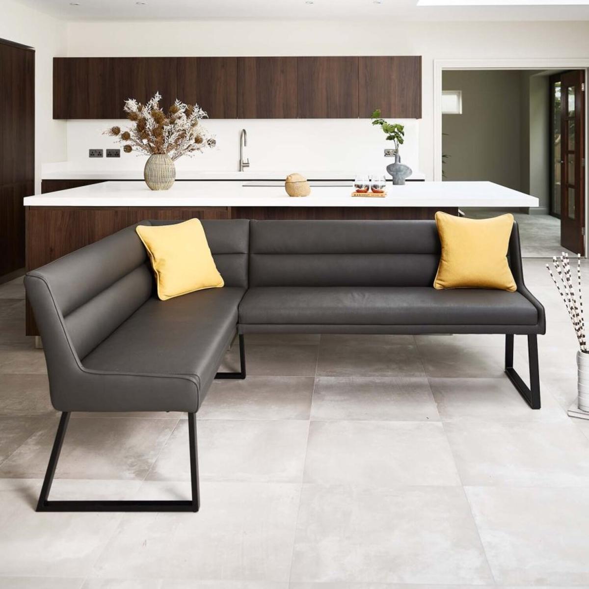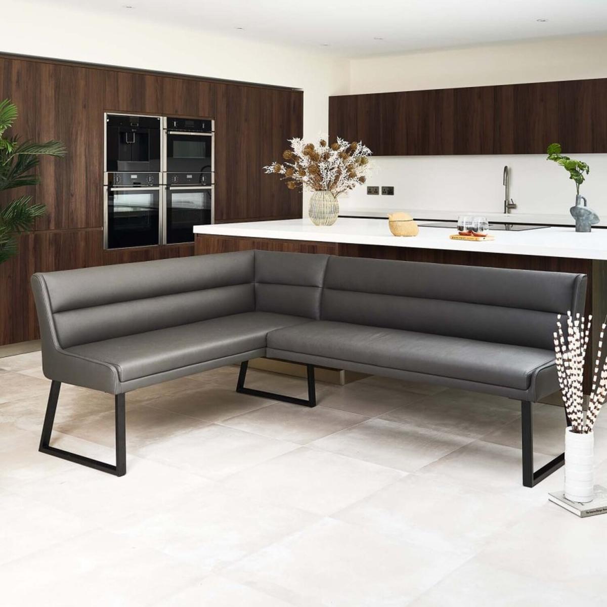 The Paulo Facing Corner Bench is both stylish and practical. Upholstered in faux leather with black metal legs, this bench is the perfect timeless addition to any dining room. It slots nicely around a table so is ideal for large families or just for when you have guests and need extra seating, and has wipe-clean fabric for messy family meal times.