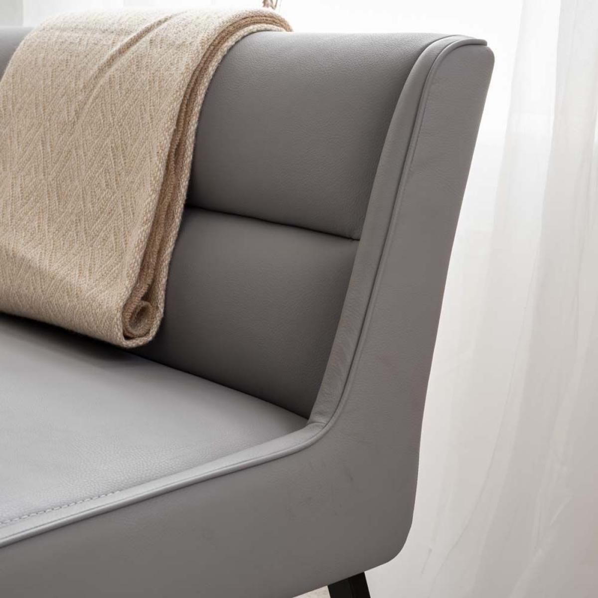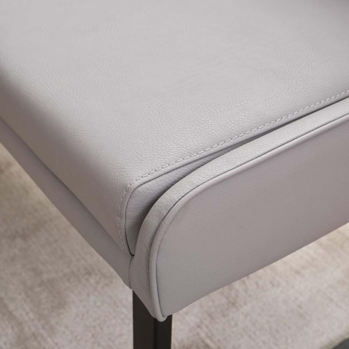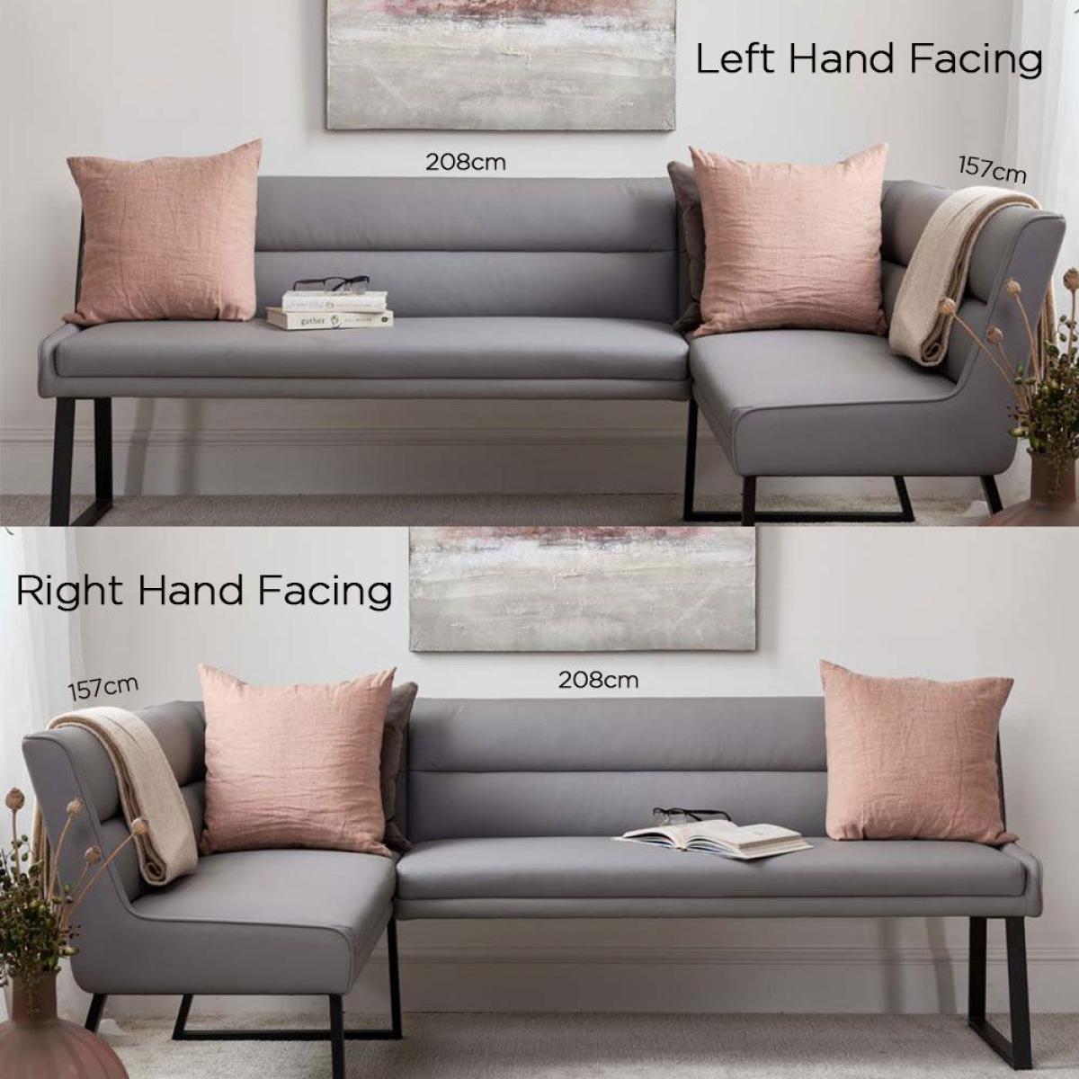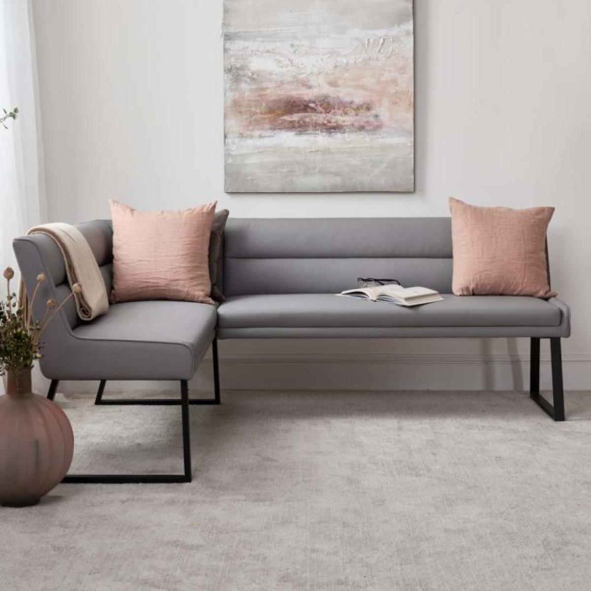 The Paulo Corner Dining Bench is a great way to allow for positioning of your dining setup in the corner of your dining room or kitchen. The communal setup is such a lovely way to dine, and with it's soft grey faux leather upholstery and thick black metal supports, the Paulo bench is a great partner to the dining tables in the same collection.
