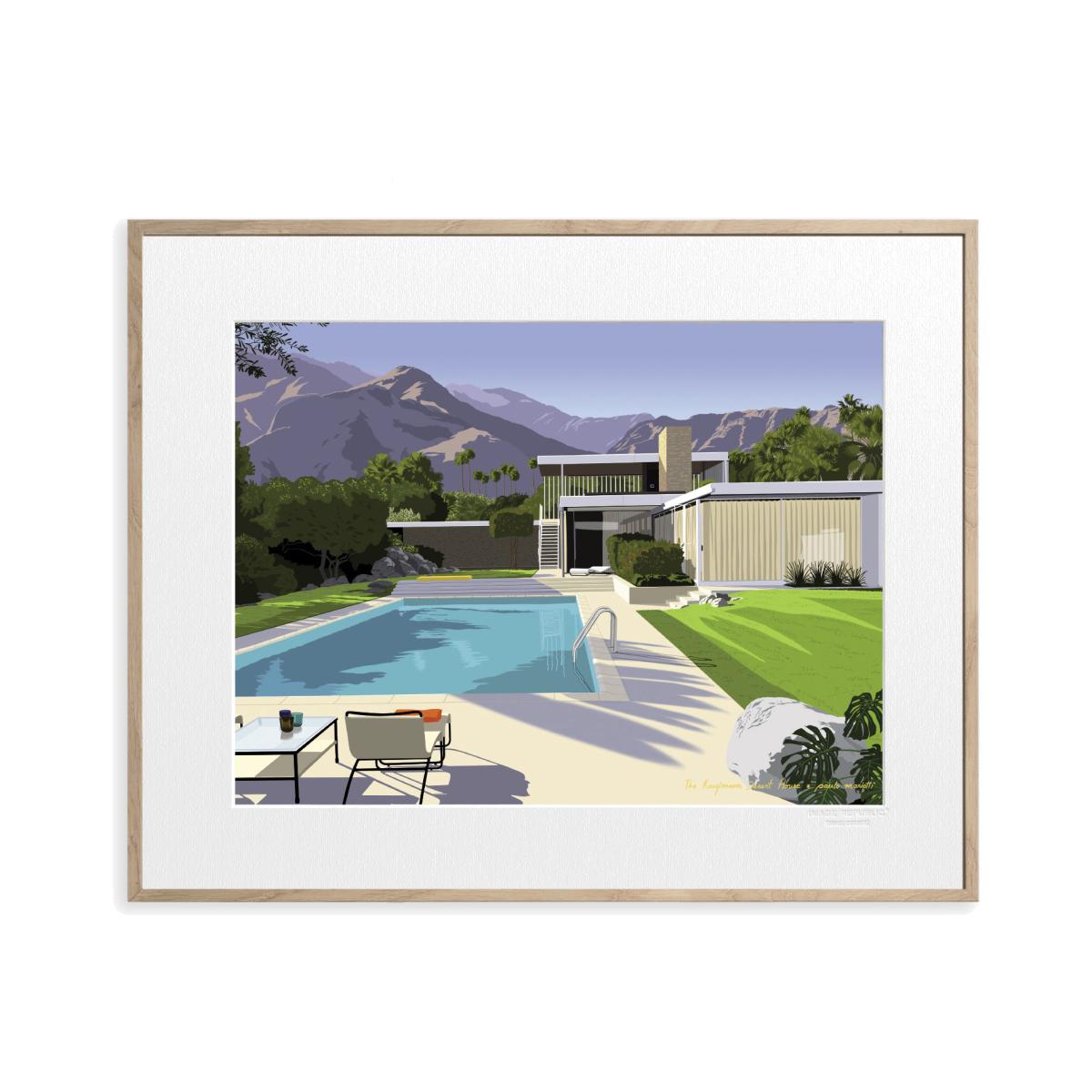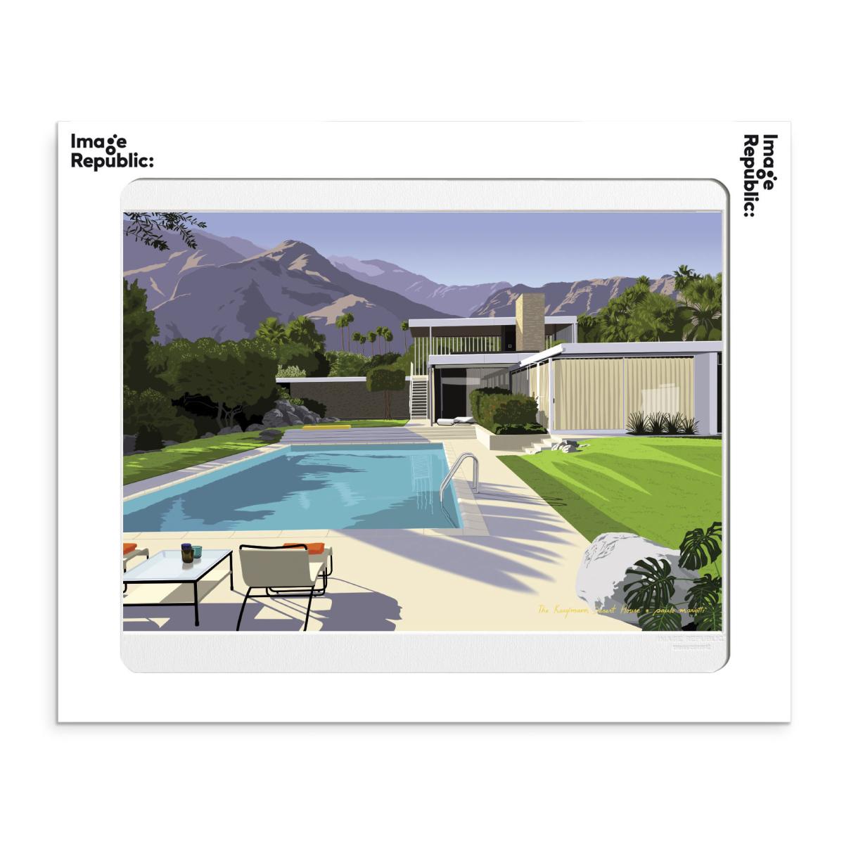 Step inside the ''Image Republic'' art gallery: a comprehensive selection of trendy, exclusive posters that will appeal to fans of graphic design and visual arts! Made in France, these prints of exceptional quality immortalise drawings by inspiring artists. Collaborating with influential artists, press cartoonists and world-renowned illustrators allows Image Republic to offer strong, communicative images. Some deliver a message, others mark an era, a moment, have meaning, make people smile or remember. Transform your walls into spaces of expression! For Image Republic, Brazilian artist Paulo Mariotti has designed an exclusive collection based around travel, drawings with a vintage atmosphere, featuring iconic destinations such as Los Angeles, Rio, Sydney, Rome and Monte-Carlo. Paulo Mariotti's illustrations are an invitation to travel, to take a break and look into a vintage, colourful world. Paulo Mariotti (re)visits the most famous Californian villa: the Kaufmann Desert House, all the more coveted since its recent sale. Built in 1946, its architect Richard Neutra was inspired by the fundamentals of the Bahaus while building a new aesthetic where concrete, steel and glass respond to the lunar landscape of Palm Springs. The clean lines of the residence extend into the peaks of San Jacinto, without any human presence disturbing this desert. A panorama mixing shadow and light, transparency and opacity, for an invitation to luxury, calm and exquisite pleasure. Born in Bahia, Brazil, Paulo Mariotti moved with his family to São Paulo in 1978, where he studied Graphic Arts at the FAAP Foundation. Diploma in hand, he moved to Paris in 1991, where he continued his university studies, this time choosing a course in Humanities at the University of La Sorbonne. Text and image have always been present in his professional life. In the 90s, he produced storyboards for short and feature films and worked creating characters for animated films. In 1999, he began illustrating for the press and advertising, in France and abroad. At the same time, he took up the position of permanent correspondent for Vogue Brazil magazine in Paris (as a journalist). In 2013, after four years as an artistic director in communication agencies, he became a correspondent for the Brazilian news channel Globo News. Since then, Paulo Mariotti has continued his career as an illustrator as well as that of a journalist. Made in France, in the Parisian workshops of Image Republic, this poster is a professional print on matt creative paper. The prints are produced on demand and mounted with care and precision to guarantee exceptional quality, faithful to the original creation. The print is placed under a picture mount (white). Format with mount 40 x 50 cm / Drawing size: 30. 4 x 41. 8 cm.