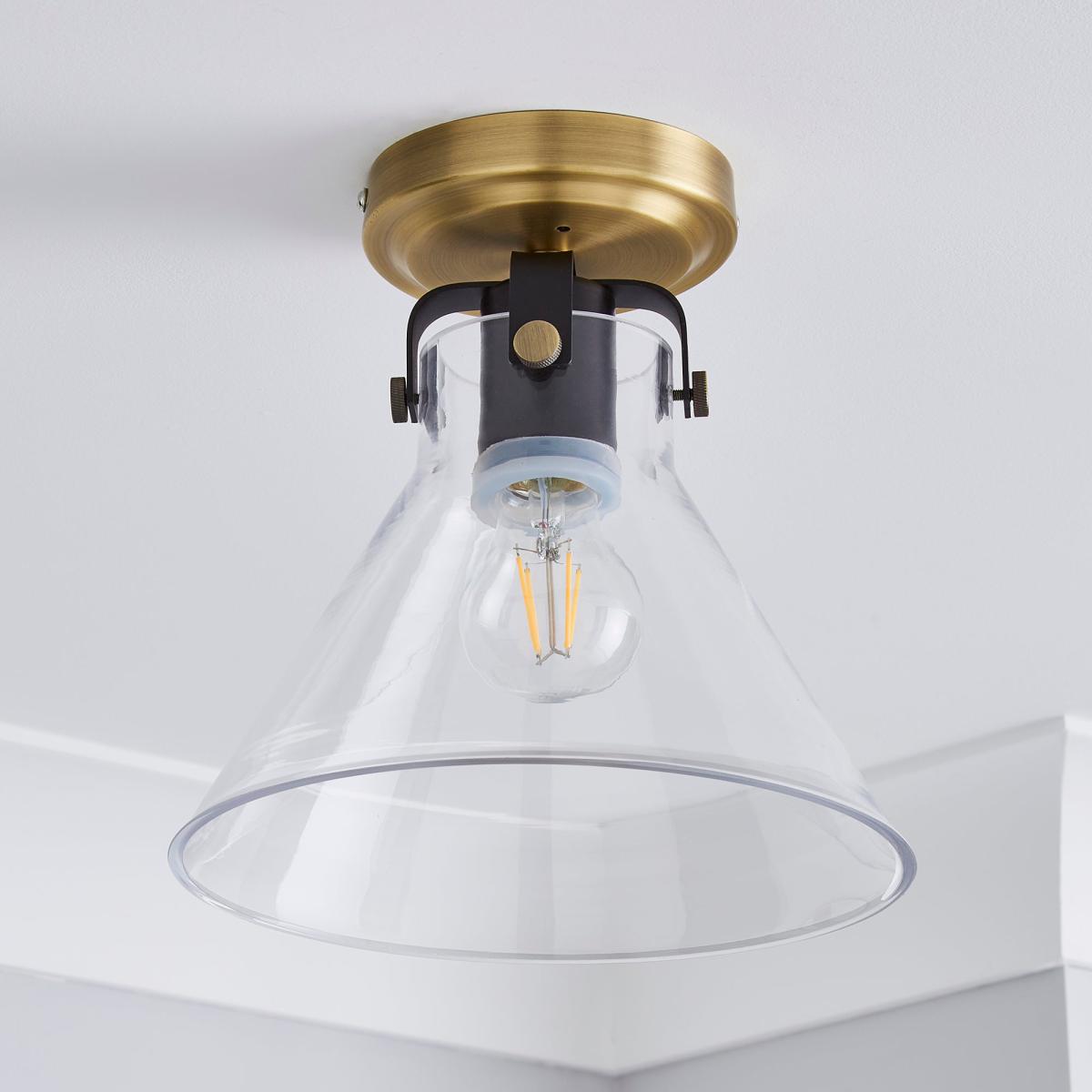 I love this vintage-inspired flush fitting in antique brass for its timeless charm and versatility. It works particularly well in classic or industrial interiors, where the warm brass detail adds richness and warmth. This light is ideal for bathrooms with exposed pipework or reclaimed fixtures, creating a cohesive vintage aesthetic. Practical styling tips include pairing it with other brass accents and neutral tones to keep the space looking cohesive, and ensuring the bulb emits a warm light to enhance its antique appeal. Its compact design makes it suitable for smaller spaces or low ceilings, offering both function and aesthetic appeal with a subtle nod to traditional design.
