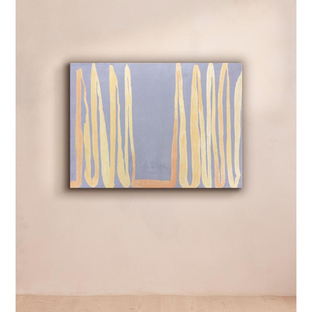 I love this piece because of its understated yet striking colour palette and abstract form, making it versatile for various interiors. It works especially well in modern, minimal, or contemporary spaces where it can add a subtle splash of colour and a sense of calm. To style it effectively, consider pairing it with neutral-toned furnishings or placing it above a simple sofa or sideboard to let the artwork be a focal point. Practical tips include framing it with simple, sleek edges to elevate its modern aesthetic, and pairing it with complementary soft furnishings in muted tones for a cohesive look. It’s a great choice for anyone seeking a contemporary piece that adds personality without overwhelming the space.