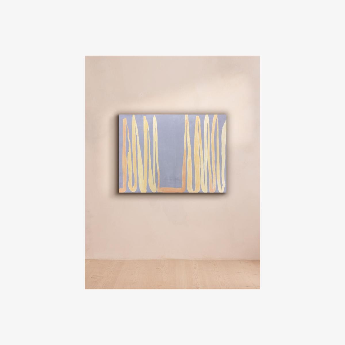 Inspired by a tiny watercolour sketch made by the artist during lockdown, using a mix of household paint, paste and acrylic on canvas to culture the fluid simplicity of the original marks. A Chelsea School of Art alumni, Kevin Jackson lives and works in London, and has work displayed in the British Museum. The artist often creates mixed-media abstract pieces as a way to analyse the place humans have in an increasingly virtual world.