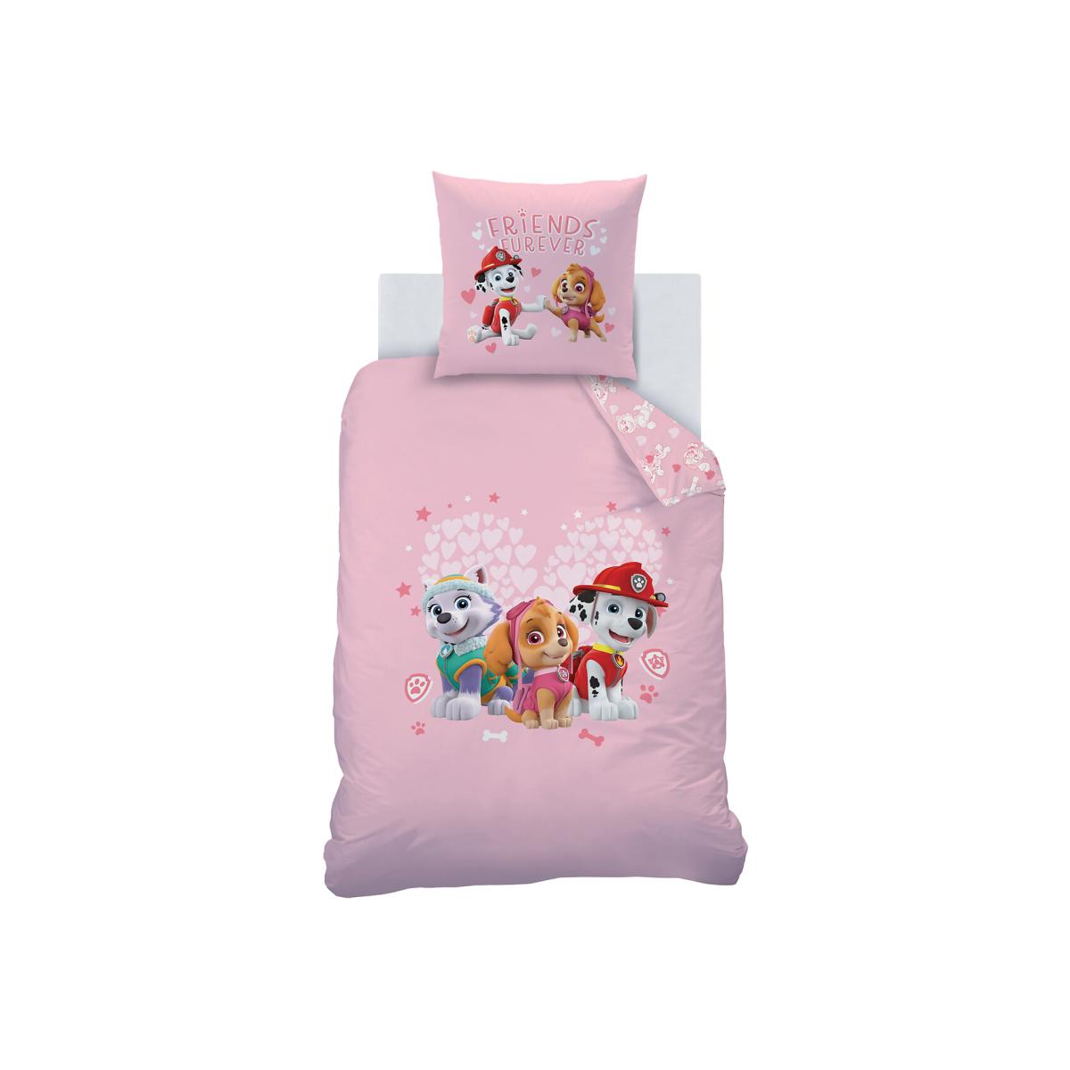 The Paw Patrol Heart child's bed set : comprises one pillowcase and one duvet cover. The perfect gift for a child who loves the TV series!Cotton is part of our daily lives. We love it for its suppleness and softness. Easy Care, it is ideal for the beds of young and old alike!Product Details • 100% cotton • 144 thread count • Paw Patrol team design on the front/continuous printed back • Duvet cover has an envelope opening Match this item with the rest of the bedding in the range for a stylish bedroom. And you can mix and match it with different colours and styles from our other bedding ranges when you want to change things up and create your own unique look. Care Advice • Machine washable at 60°C • By washing your laundry at 40°C instead of 60°C, you limit energy consumption. Sizes • Pillowcase : 63 x 63cm • Duvet cover : 140 x 200cm