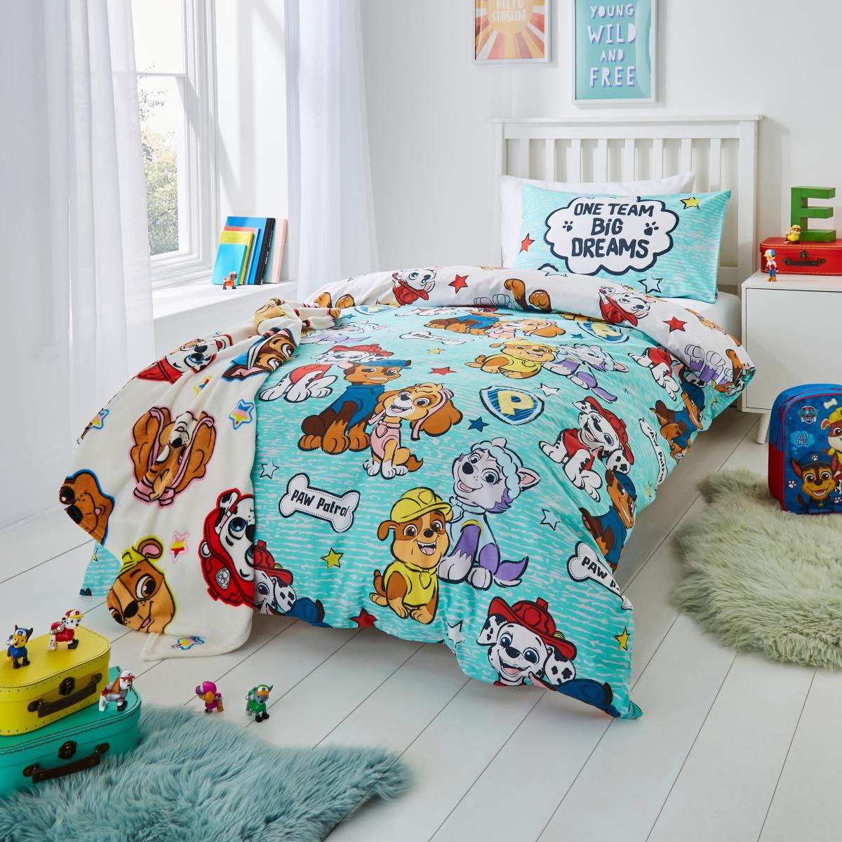 Paw Patrol Teal Duvet Cover and Pillowcase Set Light Blue/Red/Brown