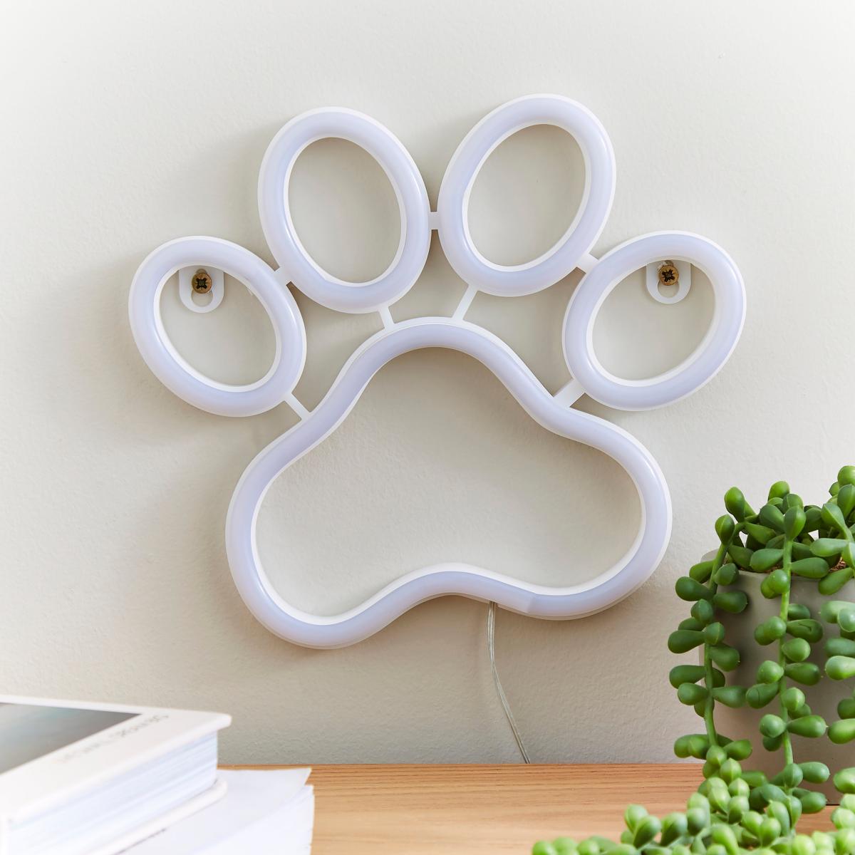 Show your love for furry friends with the Paw Print Neon Sign. Emitting a warm yellow glow, this paw-shaped light is a delightful addition to any room. Crafted from acrylic, it's easy to hang and includes a USB cable.