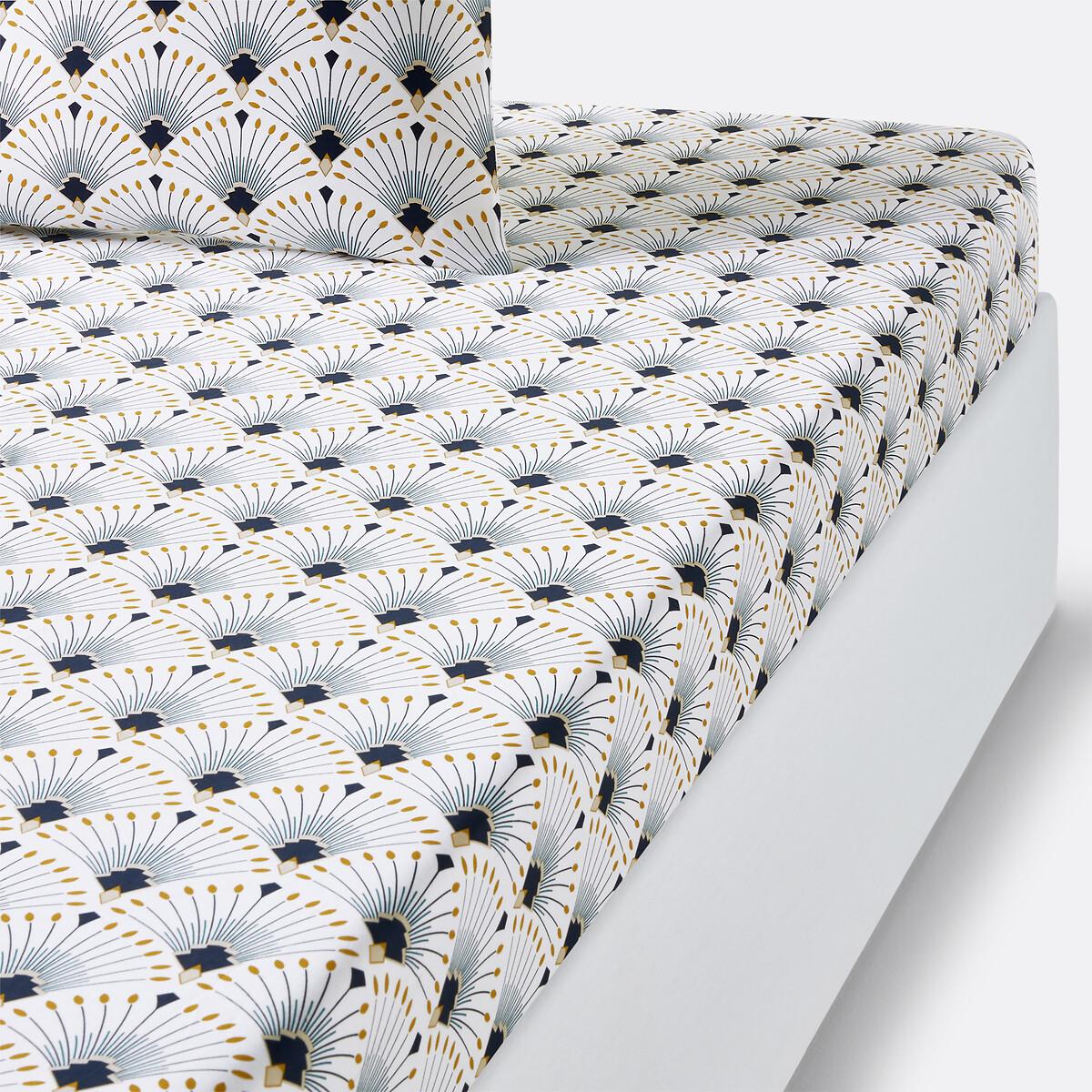 A chic and elegant palmette pattern with soft and subtle tones. Cotton with an ultra tight weave, cotton satin has a silky and satin feel. Product Details • 100% cotton • 200 Thread Count: The higher the thread count, the higher the quality of the weave • Stylised palm leaf print • Flap height 30cm for thick mattresses. Care Advice • Machine washable at 60°C • By washing your laundry at 40°C instead of 60°C, you limit energy consumption. Dimensions • 90 x 190cm : Single • 140 x 190cm: King • 160 x 200cm : King • 180 x 200cm : King • OEKO-TEX® Standard 100. Standard 100 certification by OEKO-TEX® tests textile products for harmful substances via an independent, international label.