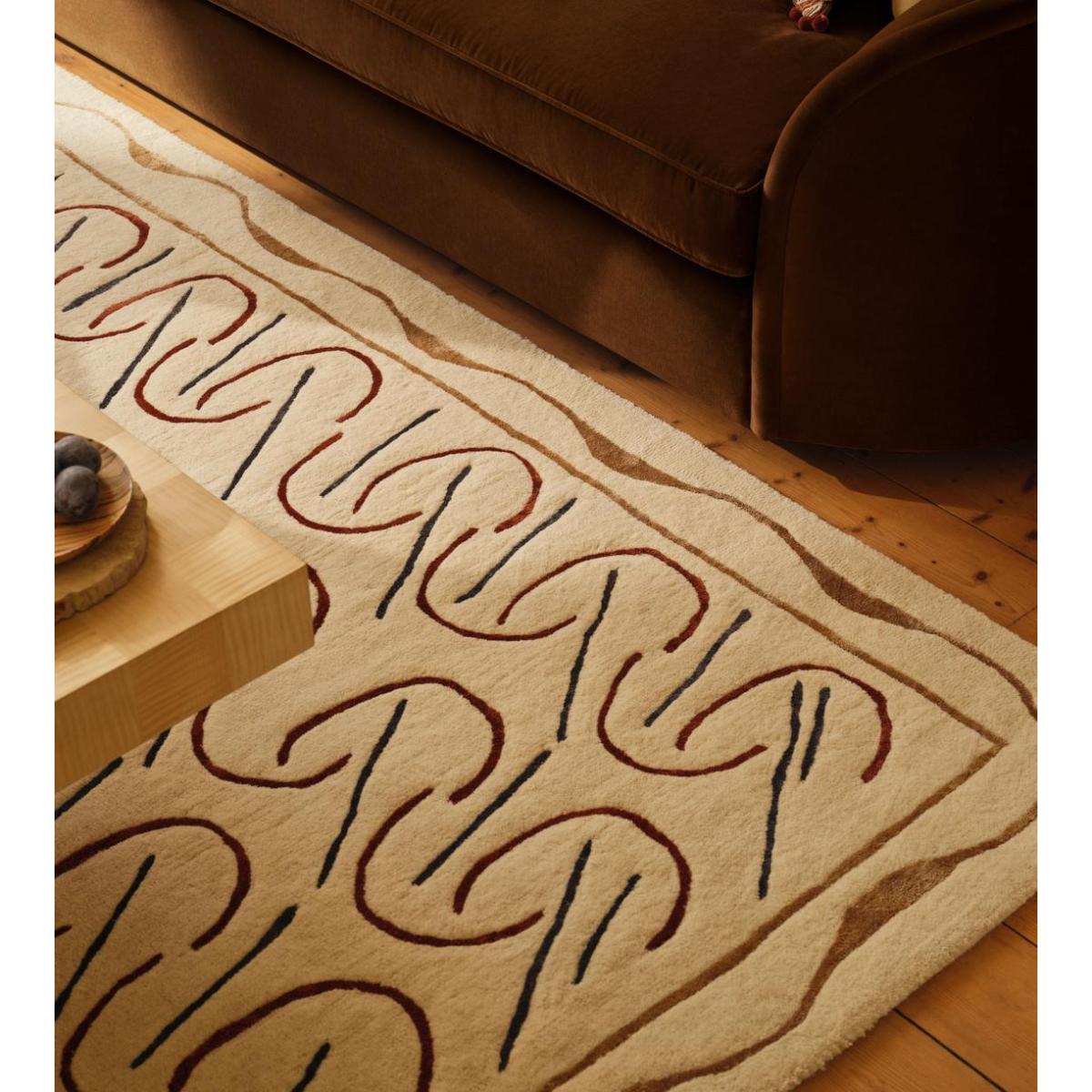 The Paynes Rug makes a fantastic centrepiece for both contemporary and eclectic interiors, thanks to its bold, graphic pattern and neutral palette. Its generous size (270 x 360cm) makes it ideal for anchoring larger living rooms or open-plan spaces, helping to create a sense of cohesion. I love pairing it with both plush velvets and sleek, modern furniture to add warmth and visual interest. Practical styling tips include layering with textured cushions or throws to soften the look further, and placing furniture at strategic points to showcase the rug’s pattern without overwhelming the space. It’s versatile enough to work under a substantial sofa or dining table, making it a stylish yet functional choice.