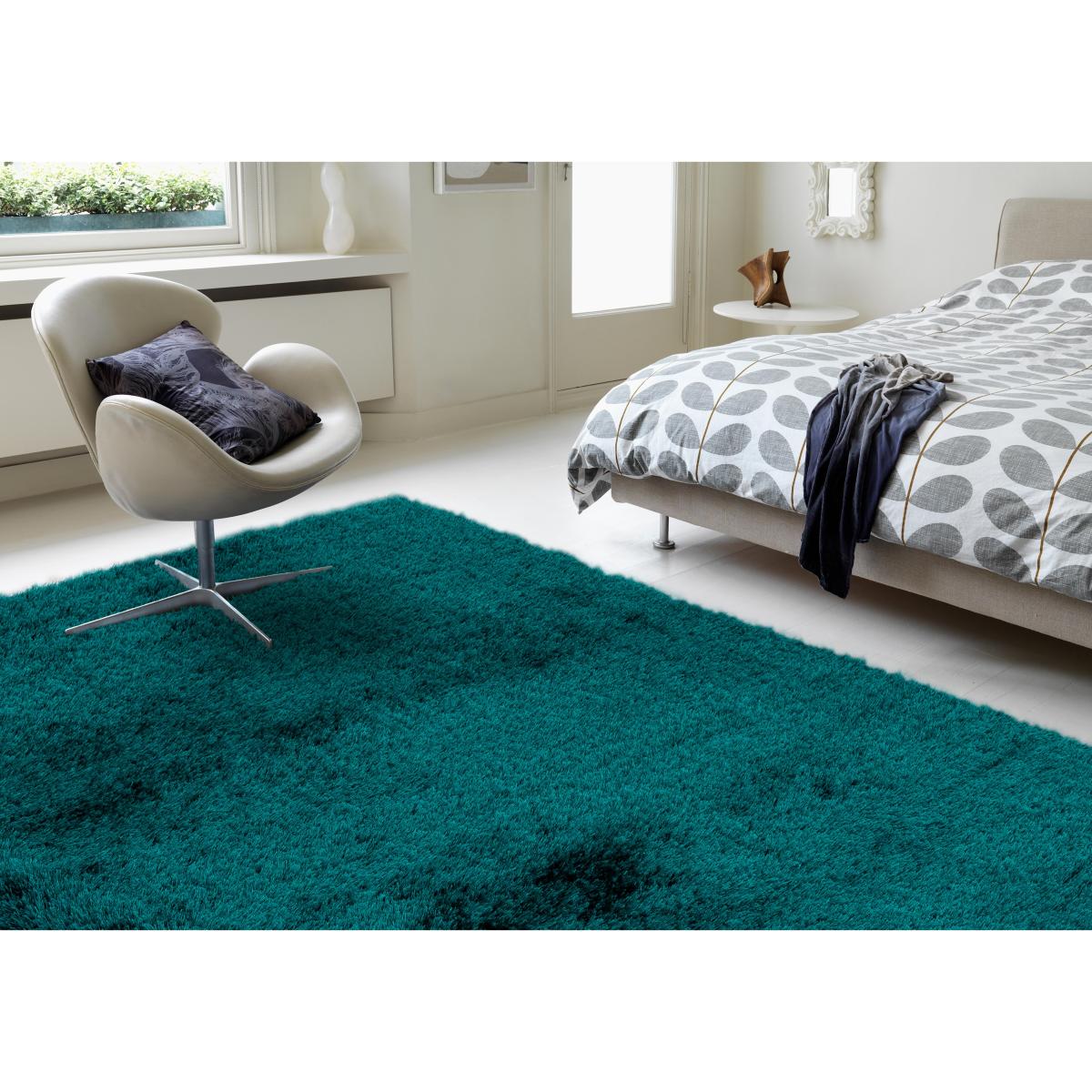This high-quality rug with a glam shimmering finish is the perfect way to bring a pop of colour to any space. And your feet will love the feel of the super-soft luxurious deep pile. Why you'll love it. Gorgeous deep pile rug brings warmth and style to any space. Contemporary style. Shimmering textured finish adds a touch of glamour. Super soft and cosy underfoot. Bold teal colour is right on trend. Also available in a huge range of additional bright and neutral colours. Choice of sizes. This rug is part of the Furniture Village home accessories collection. What you need to know. 45 mm pile height. For indoor use only. Easy to clean – vacuum regularly. Blot stains; do not rub.