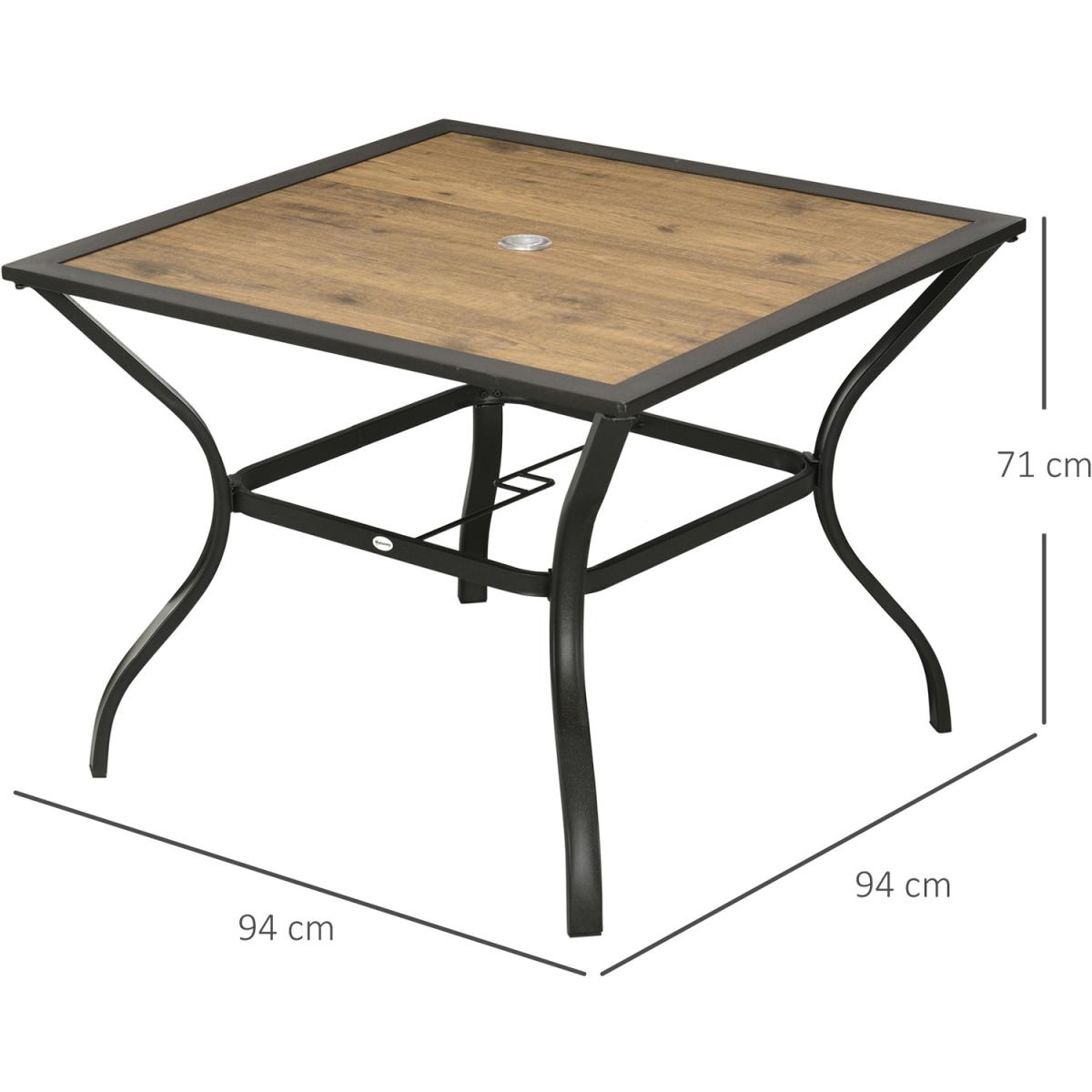 Want a place to put on backyard barbecues and cosy campfires Like to read in the breeze Need a table Outsunny has a patio dining table to help you put on the picnic of your dreams. The durable steel frame with PC board table top is stable and easy to maintain. The matching table middle with an umbrella hole can fit up to 38mm diameter pole. Perfect suit for backyard, front yard, balcony, garden, or deck. Put some party into your patio with Outsunny.
