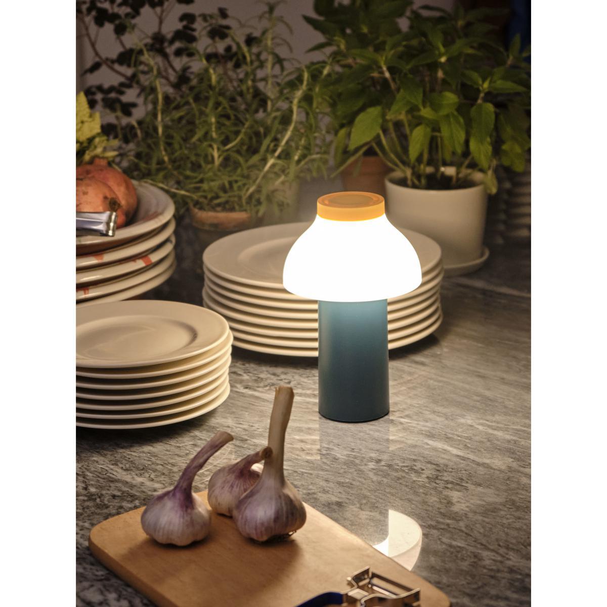 Pierre Charpin's portable PC lamp is updated with ultra-colourful pop versions that feature bold colour combinations. This ABS lamp stands out with its tulip-shaped lampshade. This lamp illustrates the work of Pierre Charpin: a simple vocabulary, elementary forms mixed with a desire to offer a sensual object. Compact, lightweight and splash-proof, the PC Portable lamp offers up to 10 hours of battery life. In the garden or on the terrace, put it on your coffee table or dining table: its soft glow creates a warm, gentle atmosphere, ideal for your evenings with friends. Put it in your suitcase during your travels: it’s perfect for camping, on the beach. Place it in a dark corner of the living room or entrance to get the soft effect of candle light. The PC Portable lamp slips in anywhere, bringing light to those recesses we tend to neglect. Designer Pierre Charpin explains: "I often talk about sensuality in design. I wanted this lamp to be more sensual than technical, to make the object less demonstrative and more user-friendly. At the time Hay was developing its first lighting collection, we worked on the PC lamp project with the common desire to offer a sophisticated, affordable product. As a designer, I want to design objects that can easily cross the border between home, office, public space, indoors and out. The PC lamp is a fine example of this limitless vision of design. What interested me was to see the lamp as a presence, as part of the domestic landscape. I wanted the object to be legible as a whole. In short, I would say "a silhouette".