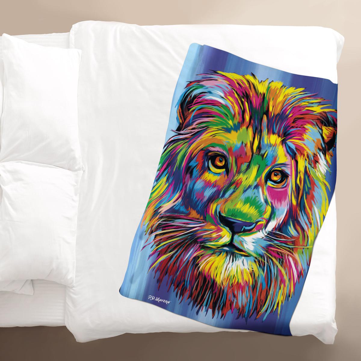 I love this lion blanket for its bold, vibrant design - it instantly adds a pop of colour and personality to any space. It's a great choice for contemporary interiors, especially in kids' bedrooms or play areas, but it can also inject fun into more eclectic or boho schemes. Practical styling tips include layering it over a neutral sofa to create a statement piece or using it as an accent on a bed for a lively focal point. It pairs well with mismatched cushions, textured throws, and simple furniture, making it versatile for both practical everyday use and decorative purposes.
