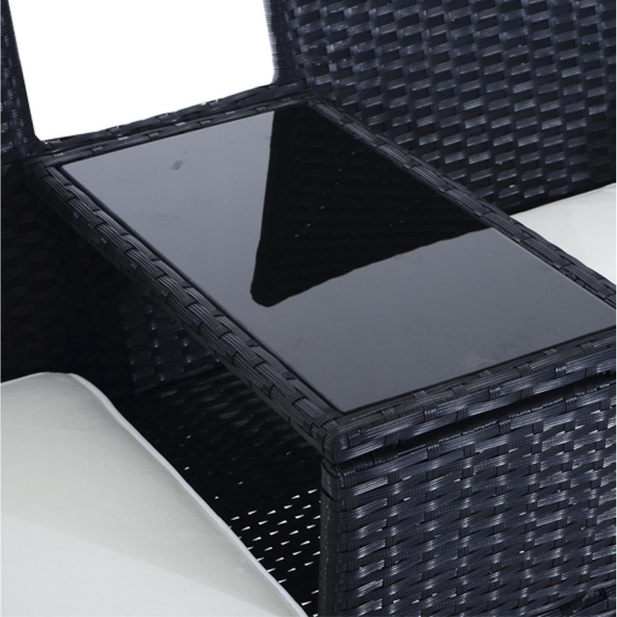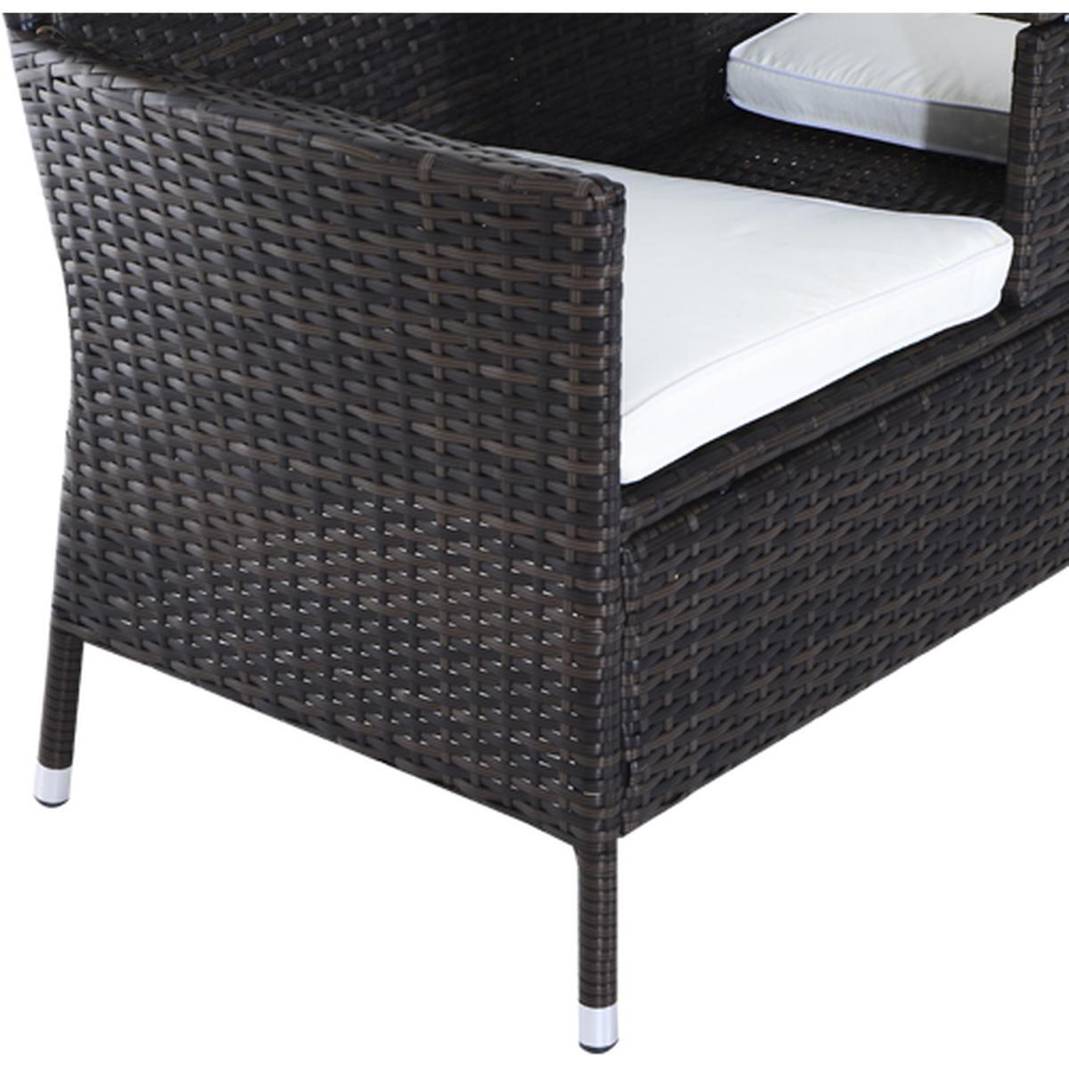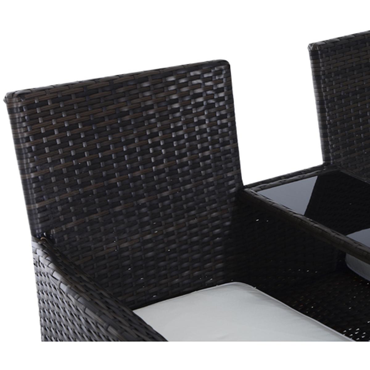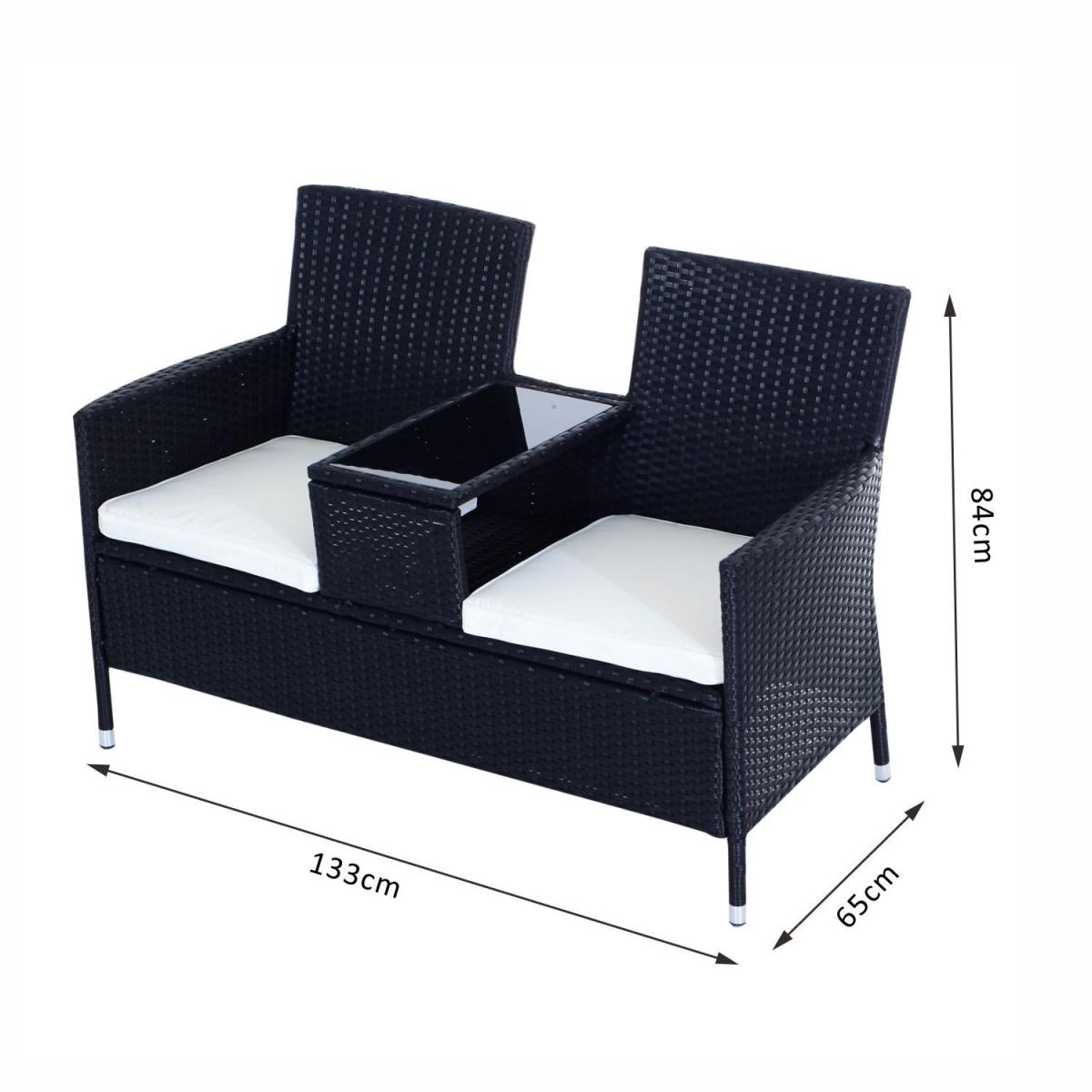 Make those wonderful times outdoors even better than before with this double seat rattan chair from Outsunny. Using metal for the base frame to provide underlying strength for seasons to come, it is crafted into an all-in-one two-seat and middle table design - giving space for you to sit with a friend with a place to keep drinks, books and smaller items right next to you. Dark grey in colour, PE wicker rattan is wrapped around the metal, giving this duo seat style and protection against mild weather damage to make it a long-lasting addition to your garden. Fire-retardant for safety, thick cushions are placed on the seats for comfort, with water-resistant covers which can be cleaned for hygiene, with thick tempered glass on the table for a smooth and sleek surface that is easy to keep clean.