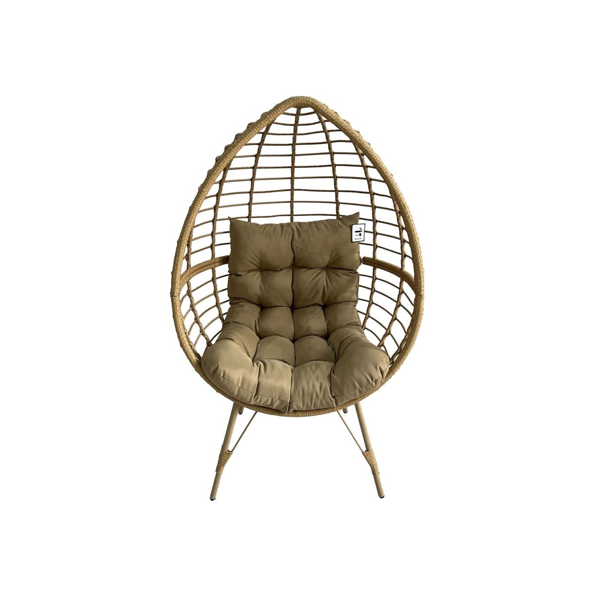 Forgo the traditional, and add a unique designed chair to your outdoor space. Featuring a gorgeous teardrop shape, our rattan patio chair not only sports a modern look but also offers an incredibly comfortable lounging experience. Constructed with beautifully wrapped PE wicker with a sturdy metal frame, you can be sure that you will have plenty of hours of relaxation ahead of you. Finished with thick padded water-resistant cushion, this piece is a perfect addition to your weekend relaxing moments.