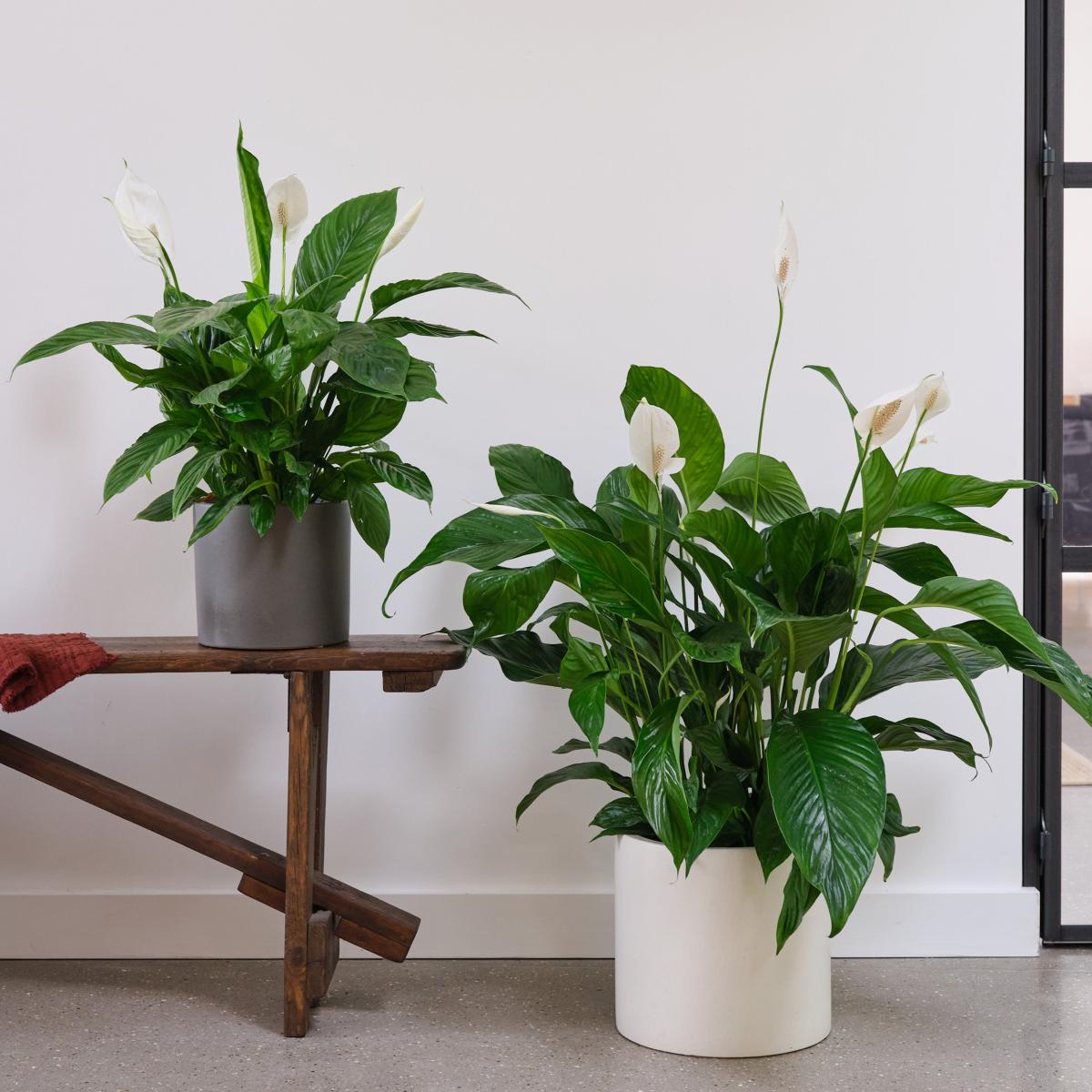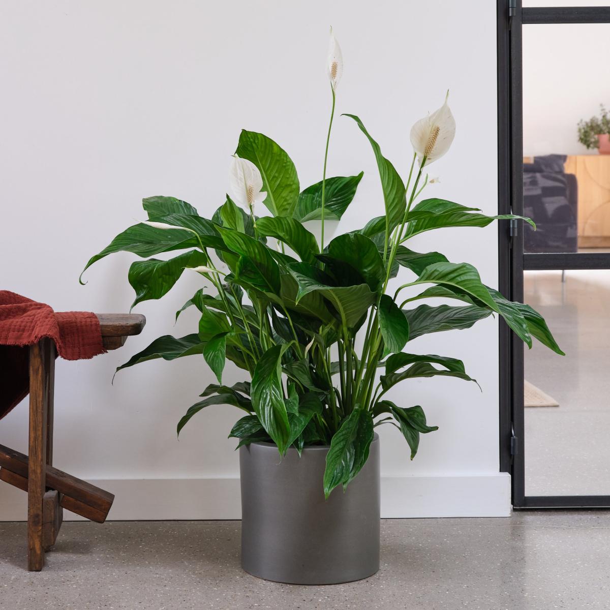 I love this peace lily in the dark grey earthenware pot for its sleek, modern look that fits well into a variety of interiors, from contemporary to minimalistic schemes. Its lush greenery and elegant white blooms bring a touch of freshness without the fuss of maintenance, making it ideal for busy homes or offices. For styling, consider placing it on a sideboard or console table to add height and visual interest, or group it with other greenery to create a small indoor garden. The neutral pot colour makes it adaptable to different colour palettes, and it’s particularly effective in spaces where you want a calming, natural element that doesn’t overpower the decor.