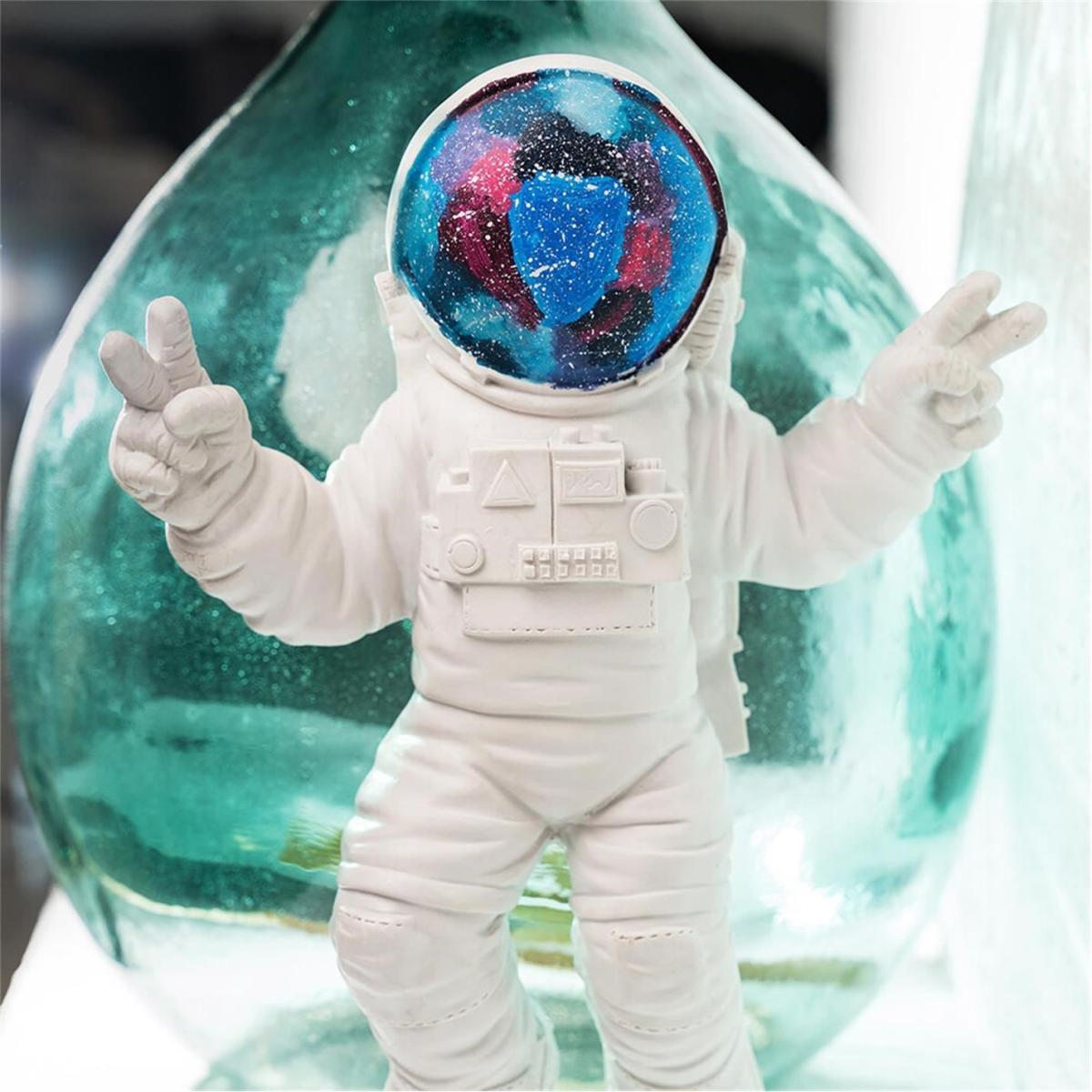 I really like this space-themed sculpture as a quirky statement piece. It works well in contemporary or playful interiors, adding a touch of fun and whimsy without overwhelming other decor elements. For styling, consider placing it on a minimalist shelf or console as a conversation starter, or pair it with other celestial or sci-fi accessories for a themed vignette. To keep the look balanced, avoid clutter around it and let this piece stand out. It’s great for adding personality to living rooms, home offices, or even a creative studio space, where it will bring a sense of curiosity and lightheartedness.