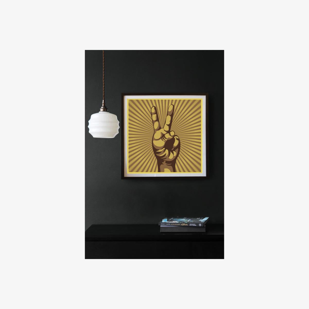 About The Peace Sign Art Print Available framed or unframed, the Peace Sign Art Print is a downright positive illustration featuring a peace hand in a yellowy gold colour on a spectacular sunburst pattern as the backdrop. Injecting instant good vibes into your interior scheme, this quirky art print offers a happy and playful message that’ll delight anyone who lays eyes on it. Why We Think You’ll Love The Illustration Art Print Offering a retro flair with a contemporary edge, this unique art print is giving us fabulous rock ‘n’ roll vibes. Beautifully illustrated we love the detailed shadows on this cool art print, it offers a unique animated look that is oozing with statement style. This retro print would be a wonderful gift for both adults and children, so what’s not to love?! How To Style The Peace Sign Wall Art Print This fun art print would make an amazing pairing with the Sunrise Art Print available on the Rockett St George site. Displayed on a feature wall, the combination of retro illustrations will create a playful, animated look that is downright cool. Alternatively, prop this quirky print up against a wall in your office, bedroom or living space for a delightful look that also offers a gentle reminder to peace out and stay positive!