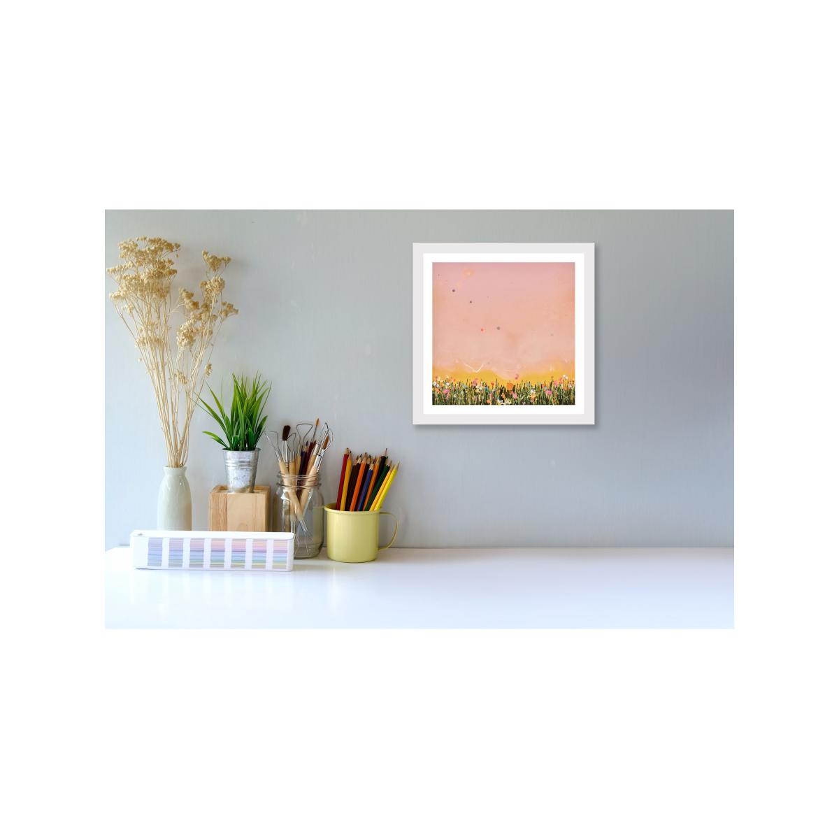 This warm and colourful limited edition print of 100 is derived from a bespoke, original painting that has been crafted using several different mediums - from acrylic paint to varnishes - applied with pallet knives, trowels and scrapers (paint brushes were banned!) to create an evocative piece of work. Peach Skies is an expressionist piece that depicts a stunning sunset full of orange hues, behind a field of wildflowers, and would sit beautifully as a focal point in your home, adding an injection of colour and contemporary design. This fine art print will be delivered to you hand framed, ready to hang in your home, and with a signed, certificate of authenticity. You will also receive details about the artist and their inspiration behind your new artwork, providing the perfect conversation starter with family and friends.