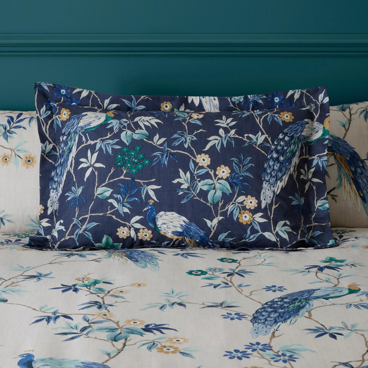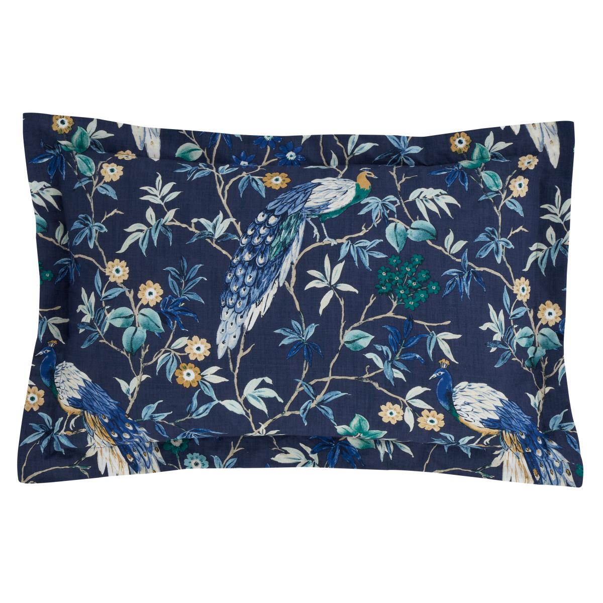 Featuring a floral design, peacocks sit upon a navy backdrop. Alternatively, turn the pillowcase over to reveal a white backdrop reverse for a quick style change. Finished with a smart oxford edge, the pillowcase has been crafted from an easy to care for polycotton material and is fully machine washable. Complete the look with the Peacock duvet cover set. This collection is verified by OEKO-TEX® and independently tested for harmful substances as well as manufactured using sustainable processes under socially responsible working conditions. MADE IN GREEN by OEKO-TEX® is a unique product label to trace the countries and production facilities - search the product label for more information.